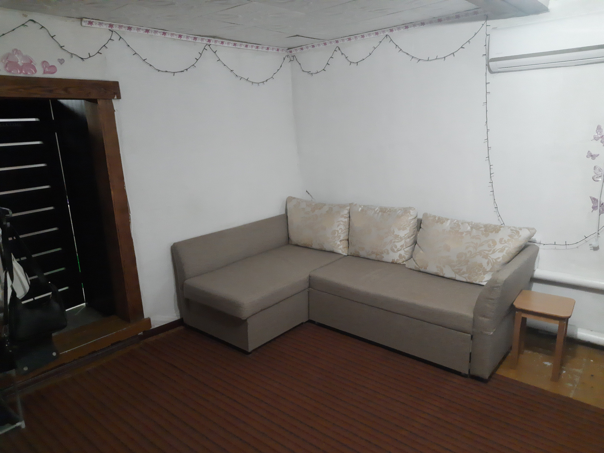 В доме две комнаты (изолированные), кухня (остается качественный кухонный гарнитур с встроенной техникой - индукционная плита, посудомоечная машина). Санузел совмещен, на горячую воду бойлер (100 л.). В комнате установлен кондиционер. Есть функционирующая русская печка.