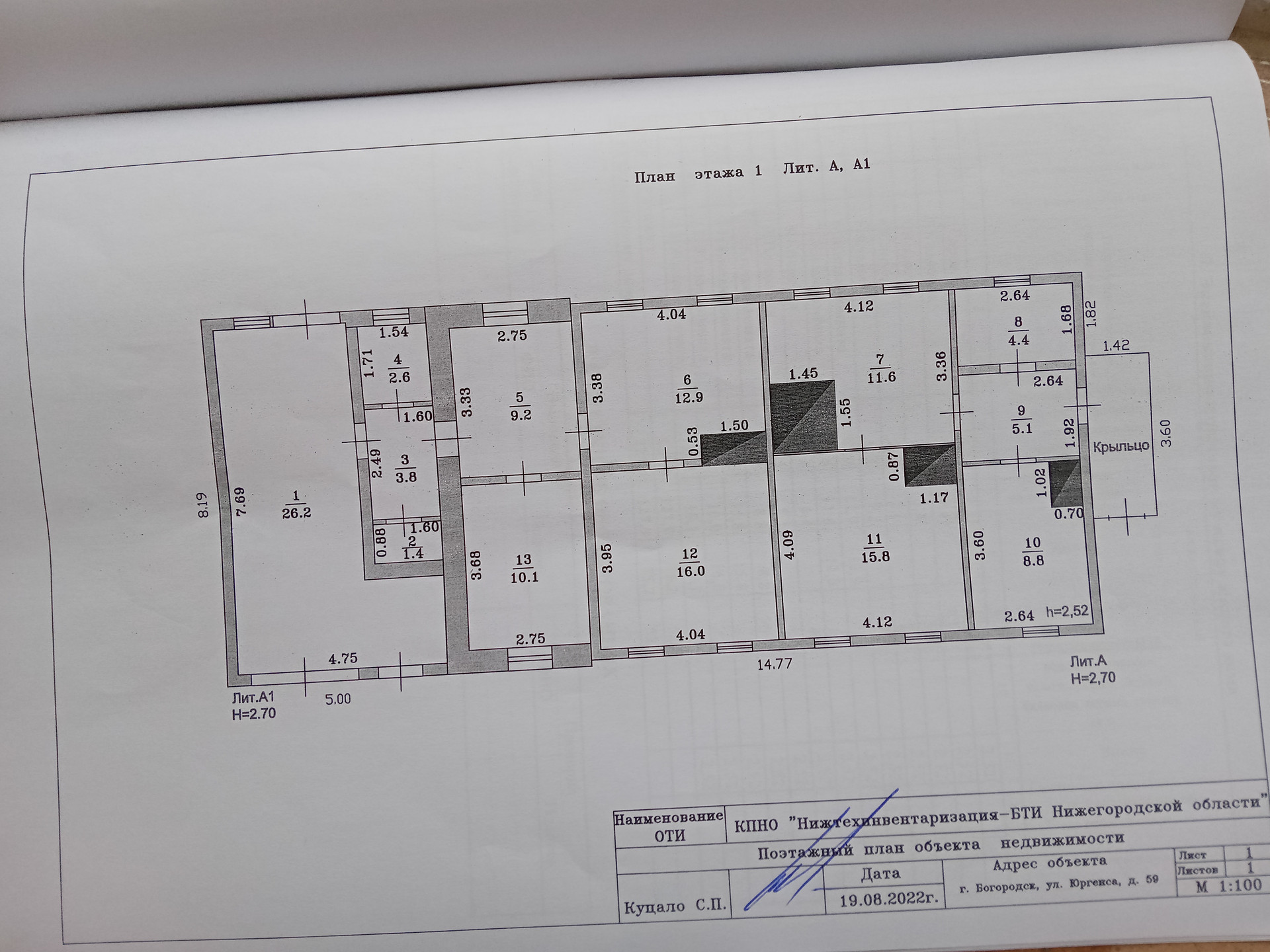1-этажный дом, 127 м2, на продажу в Богородске, улица Юргенса, 59