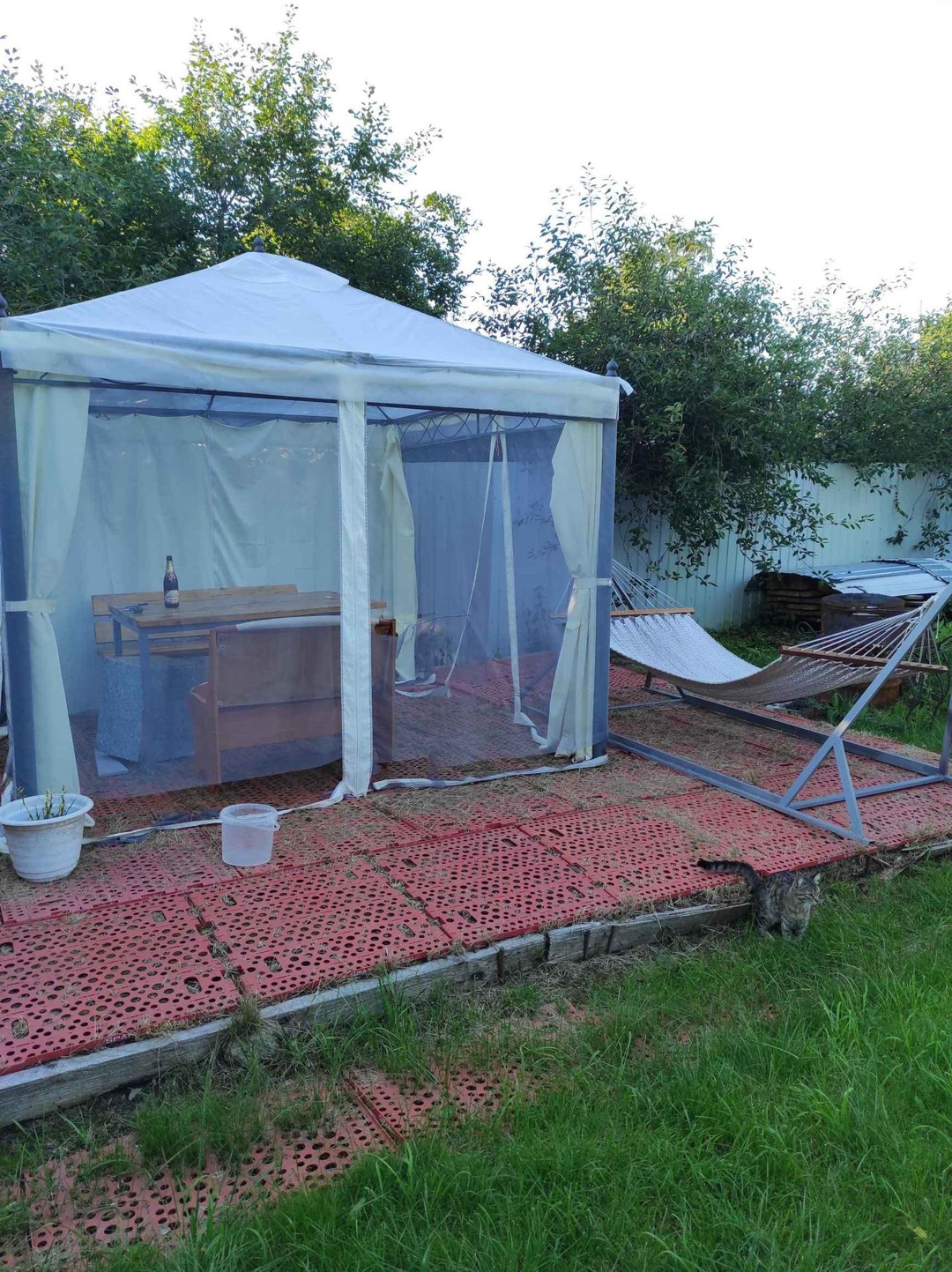 Дом огорожен забором со всех сторон. Удачное расположение дома, получается, что соседи далеко, никто не мешает.