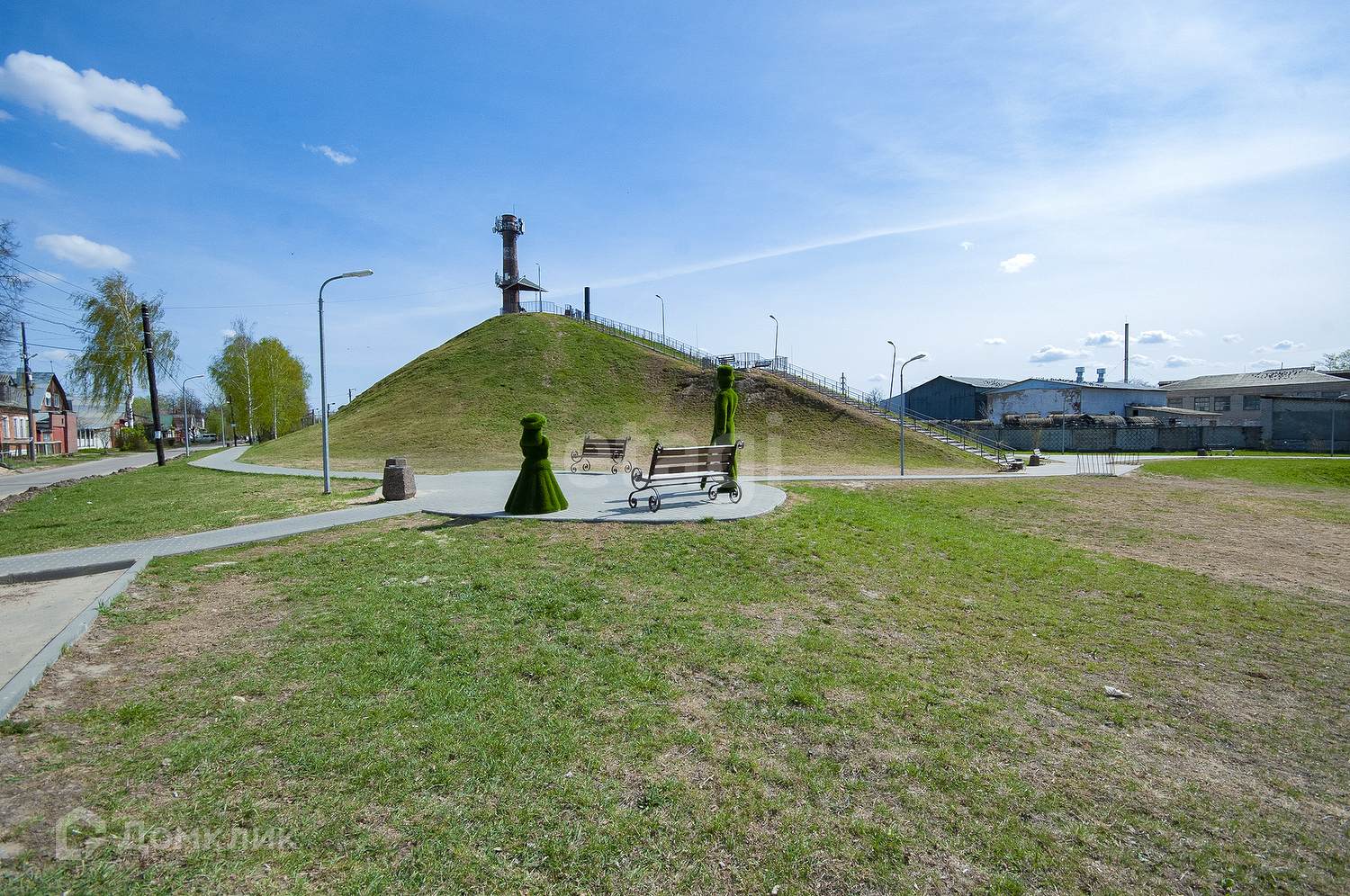 Рядом озеро с оборудованным пляжем и детской площадкой.