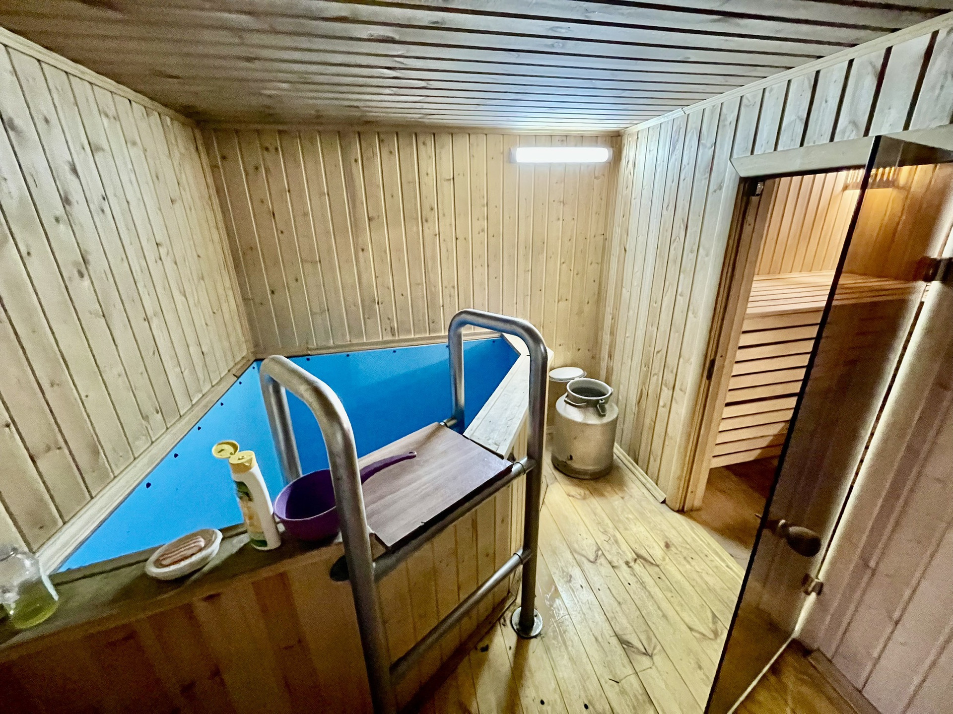 Есть новая баня с бассейном, гараж, погреб.