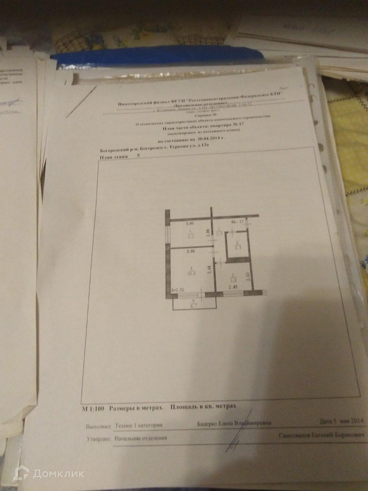 1-комнатная квартира, 29.7 м2, этаж 5 / 5, на продажу в Богородске, улица Туркова, 13А