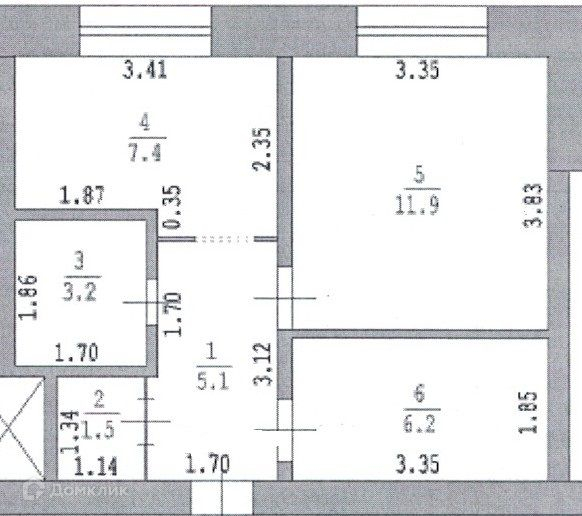 Общая площадь 35.3 м2