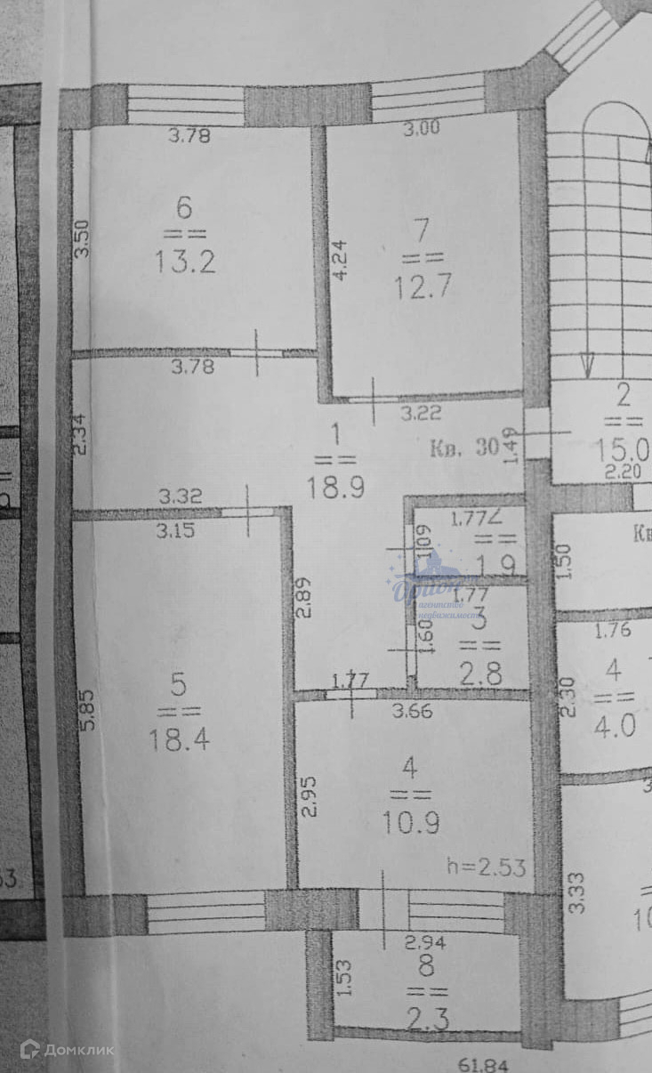 Высота потолков 2.53 м