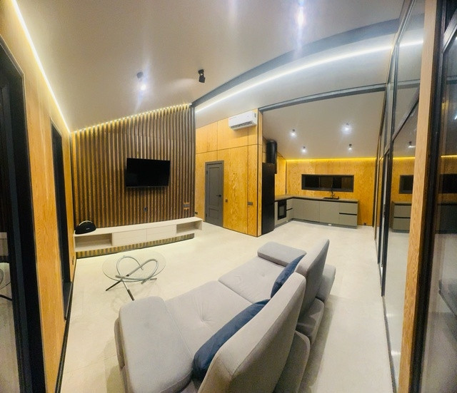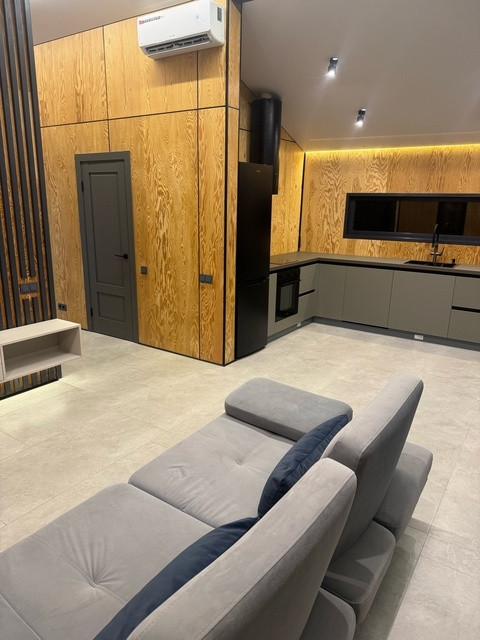 В доме - две спальни, санузел совмещенный, котельная, кухня совмещенная с гостиной.