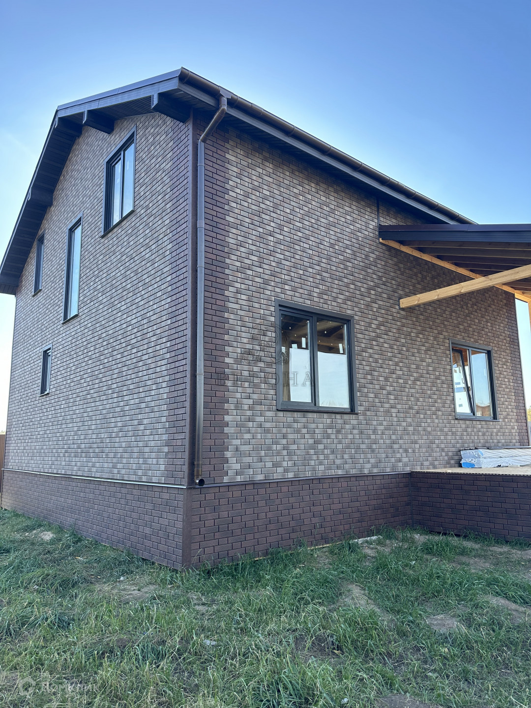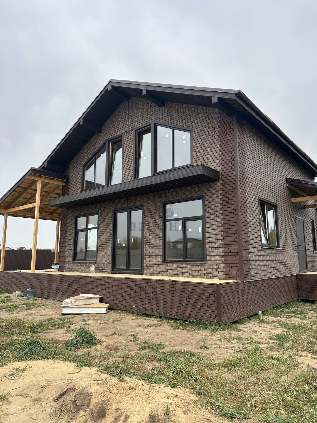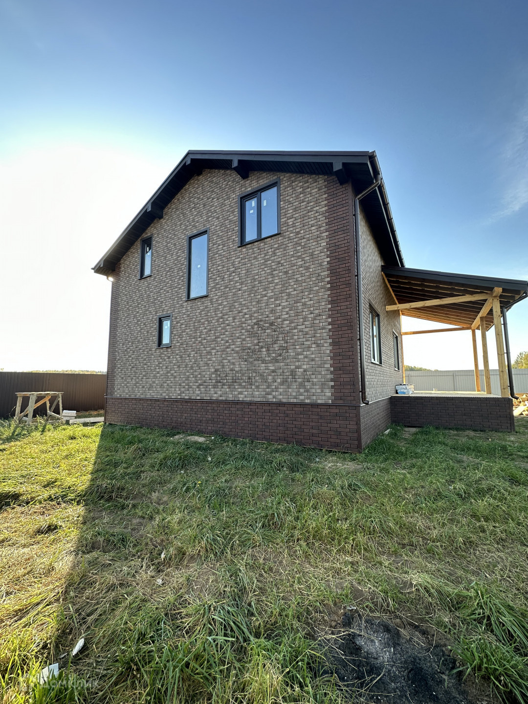 СИП панелей. Фундамент - железобетонные сваи. Полностью обшит премиум сайдингом Grand Line. Участок площадью 7.4 сотки.