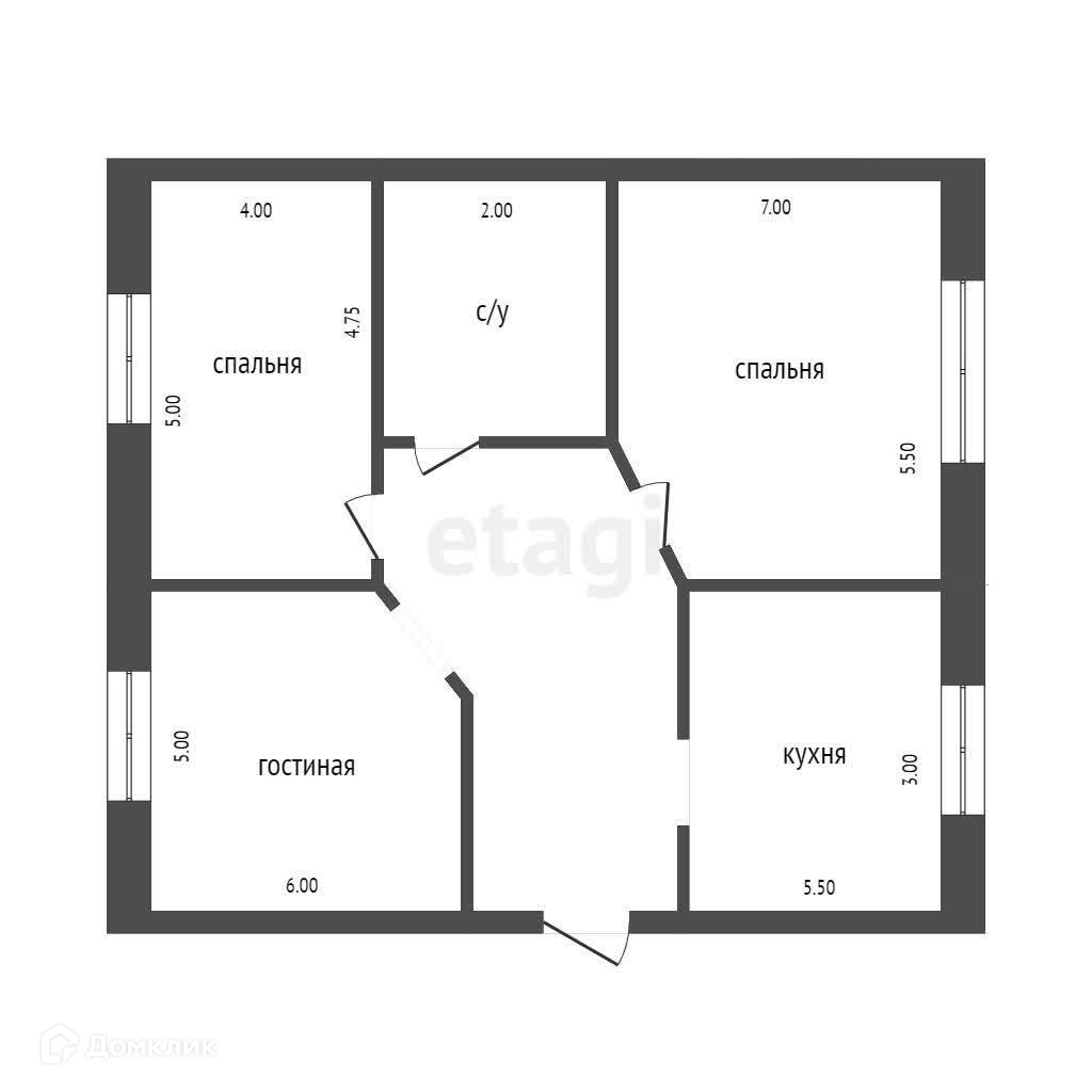 Общая площадь 58.9 м2