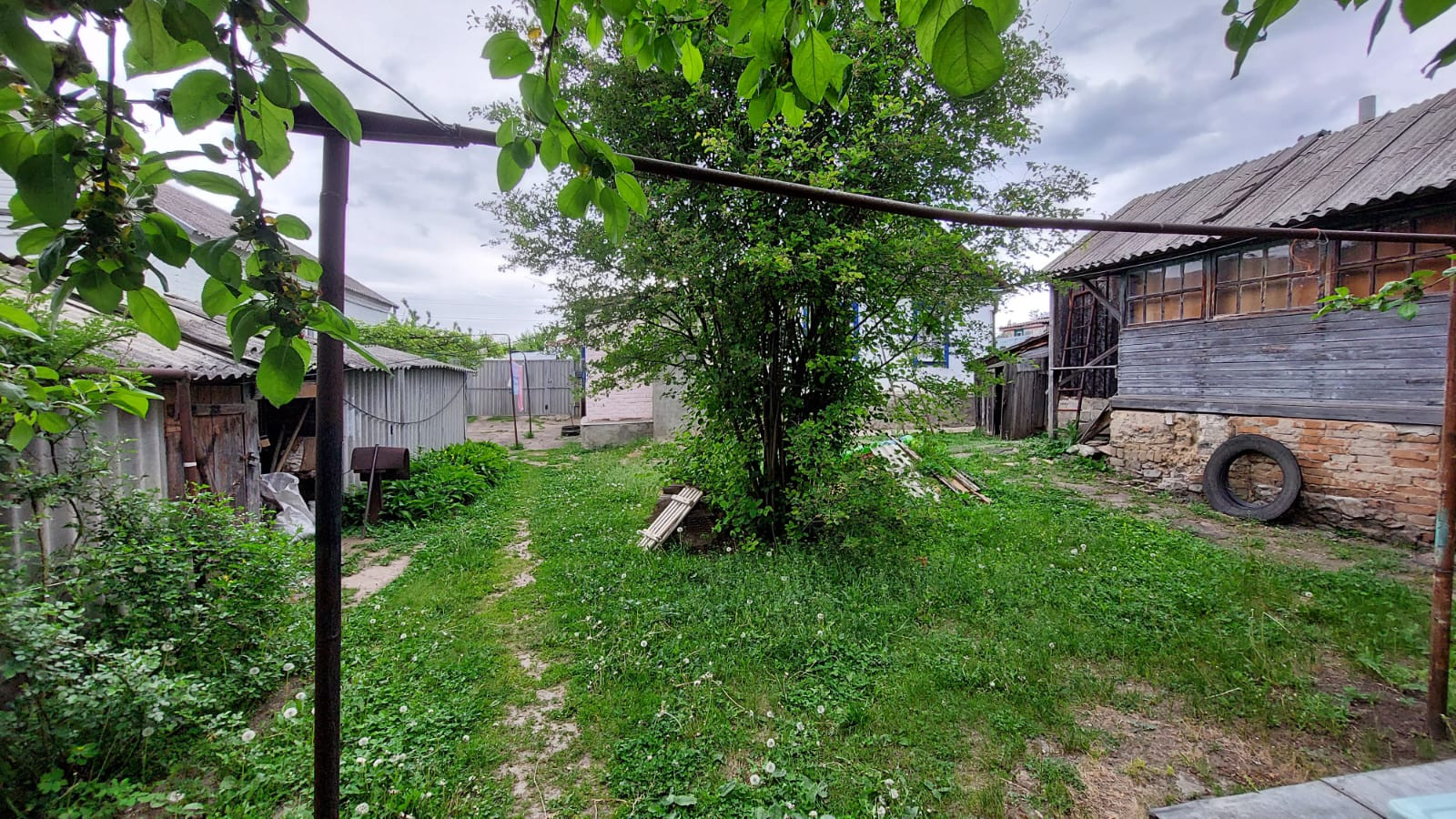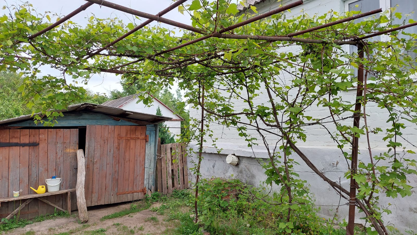 Небольшой раритетный домик на участке размером с футбольное поле. Рядом с домиком времянка с печным отоплением и хозпостройки. По участку рассажены плодоносящие деревья, создающие летом освежающую тень. Вкуснейший виноград и летний душ — просто вишенка на торте.