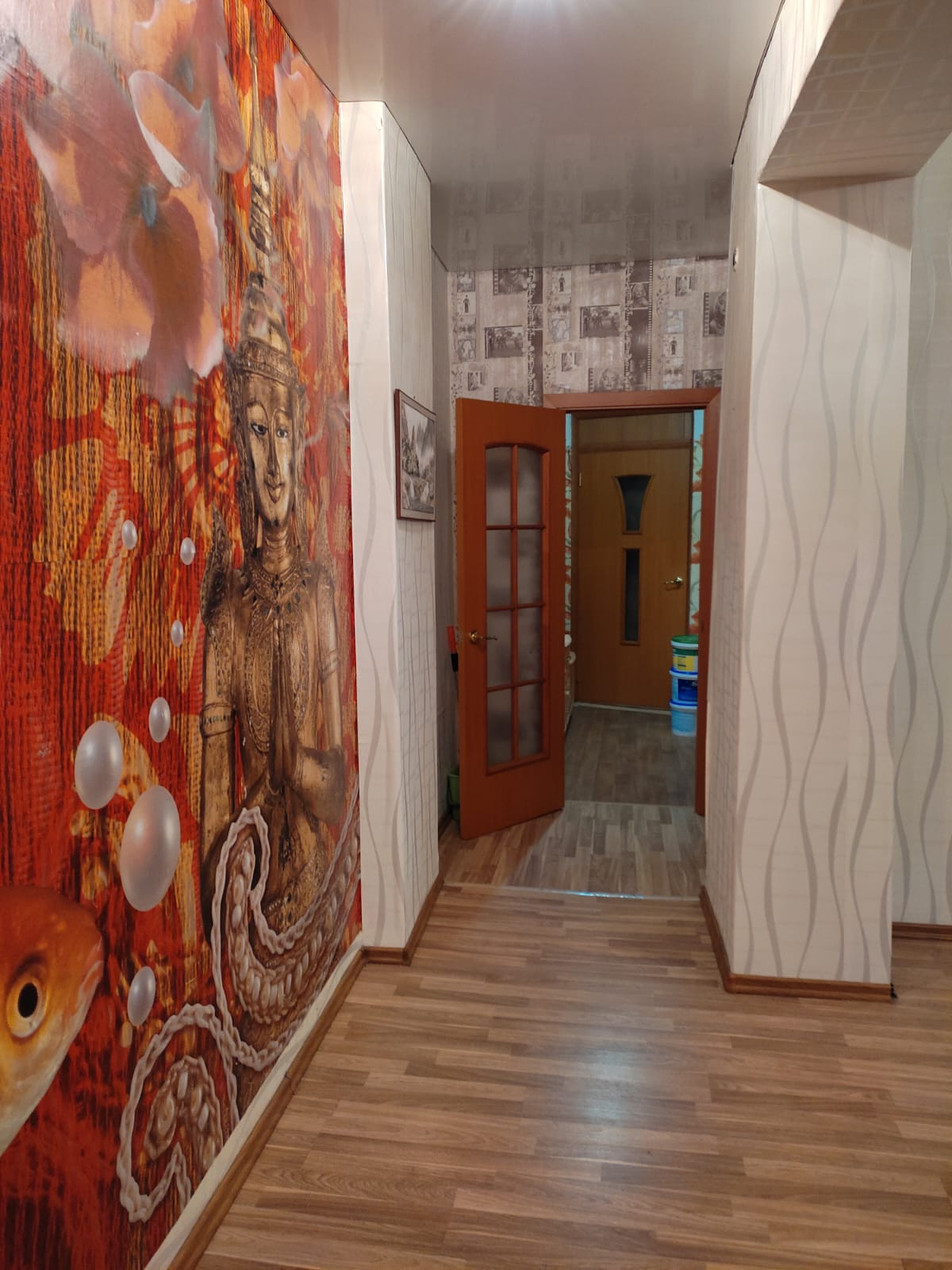 Ремонт в квартире также сделан сравнительно недавно: туалет и ванна обновлены, подключены теплые полы. В квартире по большей части уложен износостойкий дорогой ламинат, под которым также есть утеплительная подложка. Потолок натяжной. Окна выходят на разные стороны дома. Есть отдельная гардеробная с освещением. В квартире две большие жилые комнаты. Отдельная прихожая в виде небольшой закрывающейся комнаты, поэтому шума из подъезда точно не услышите. Поставлены хорошие окна, что позволяет избавиться от наружного шума при его наличии. В квартире вполне комфортно могут проживать до 5-6 человек в зависимости от ситуации, поэтому этот вариант очень подойдет многодетным семьям.