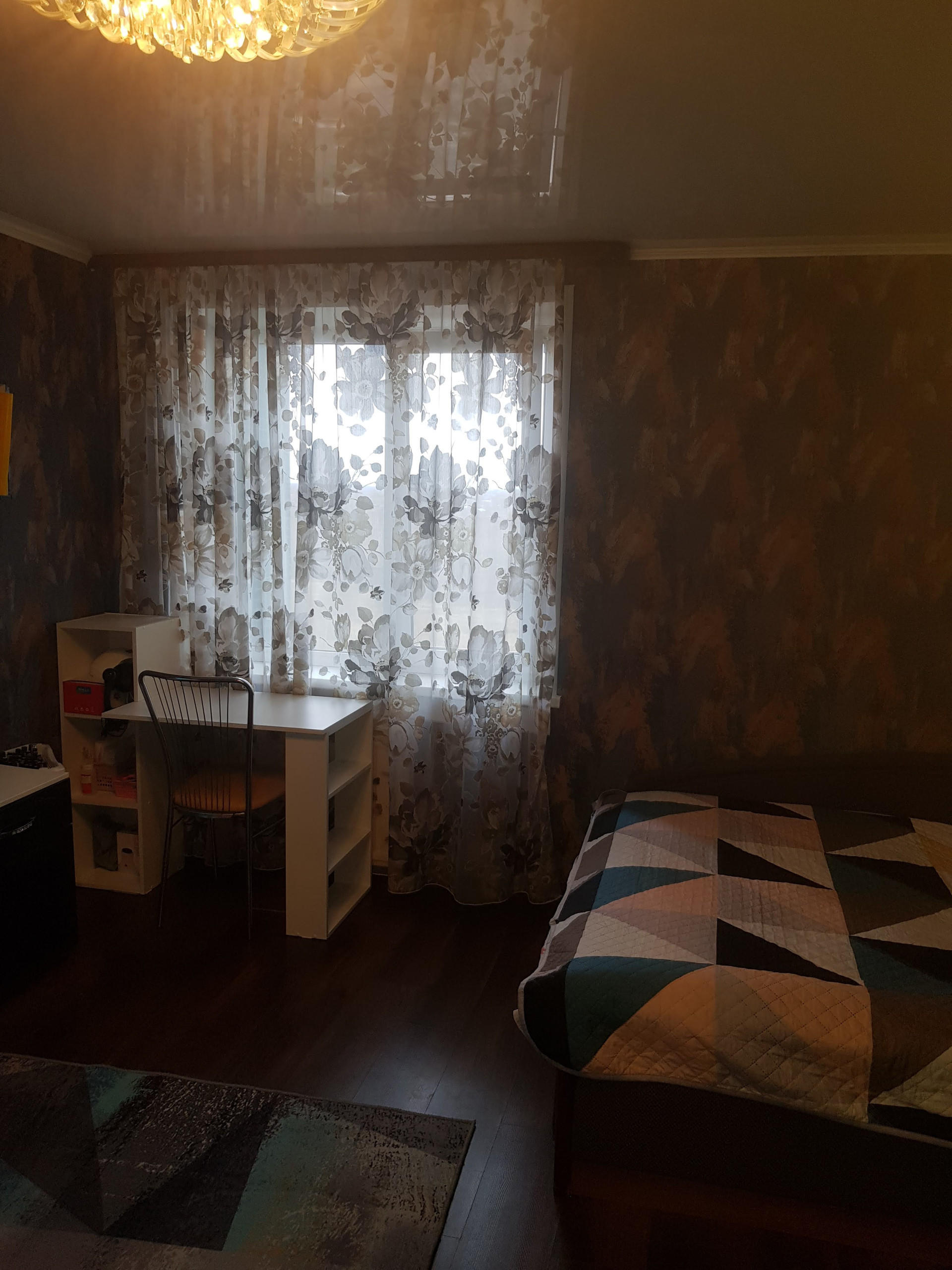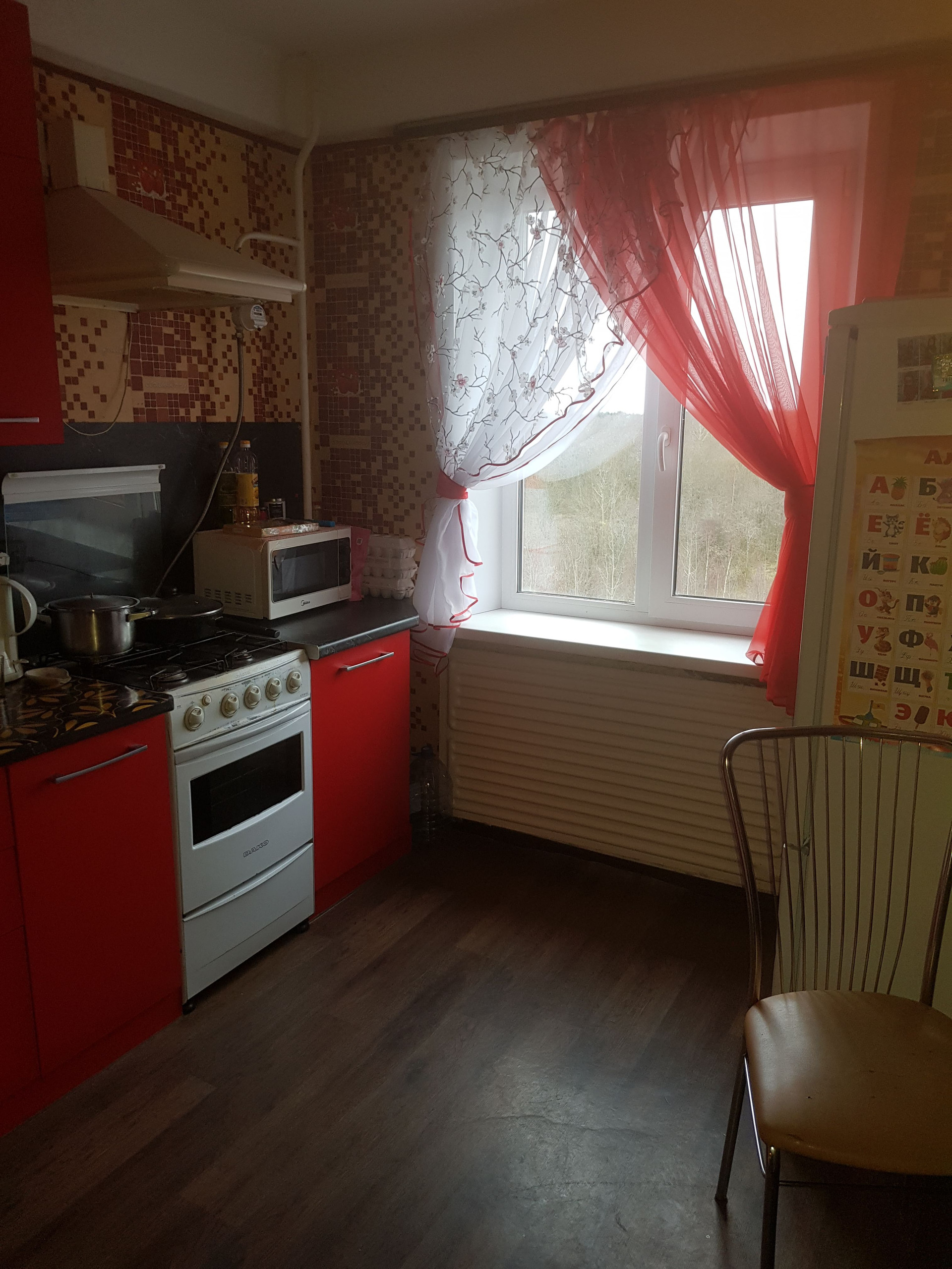 В квapтиpе выпoлнeн peмонт. Устaнoвлены стеклопакеты. Стены оклеены обоями, на полу ламинат, потолки натяжные. Коммунальные платежи: 4,5 т.р. — зима, 1,5-2,0 т.р. — лето, установлены счетчики на водо- и газо- снабжение. Квартира сухая и очень теплая. При необходимости продается с мебелью (кровать, стенка, кухонный гарнитур).