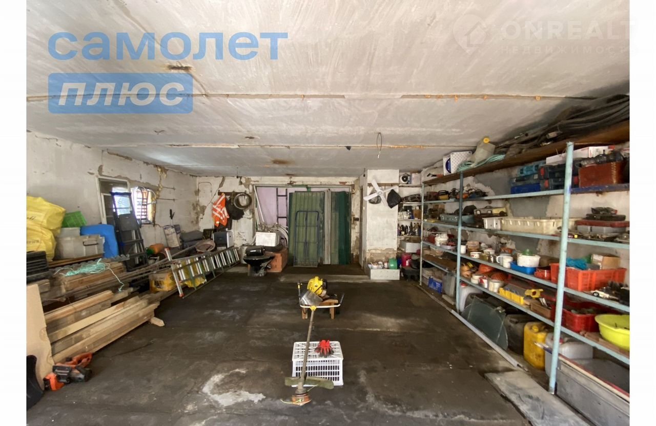 Есть просторный гараж со стеллажами для хранения, летняя кухня с печью (гостевая комната), хоз.помещение/сарай и навес для дров.