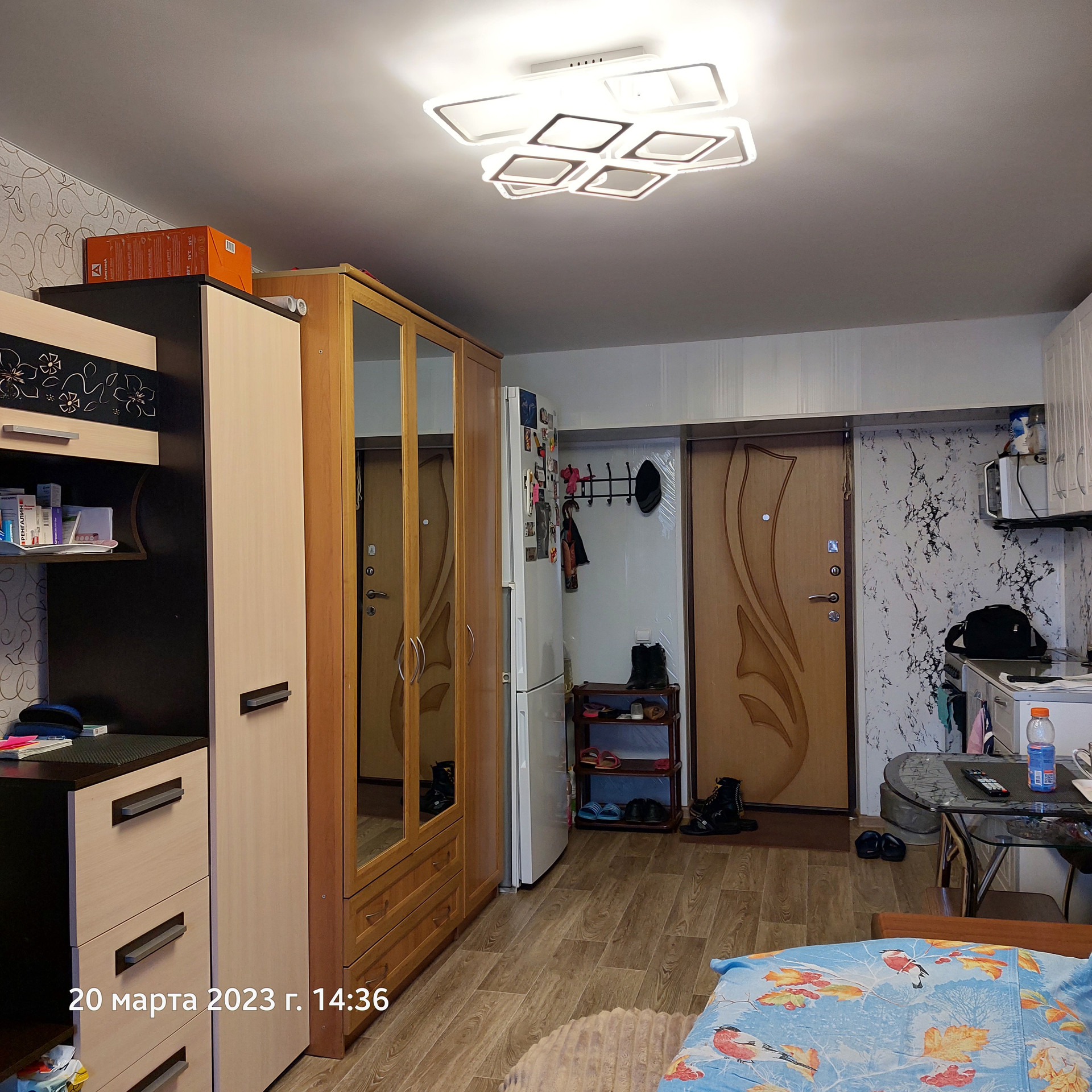 В комнате поменяна электропроводка(медная ), новый электрический счётчик,.