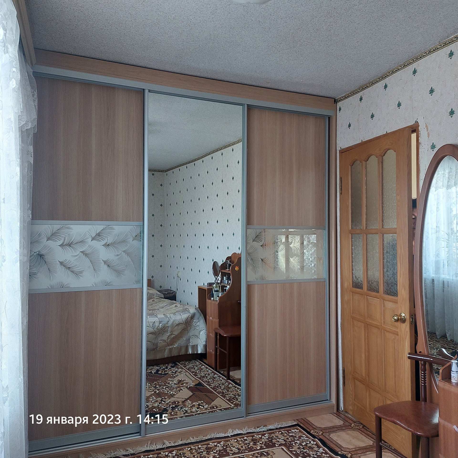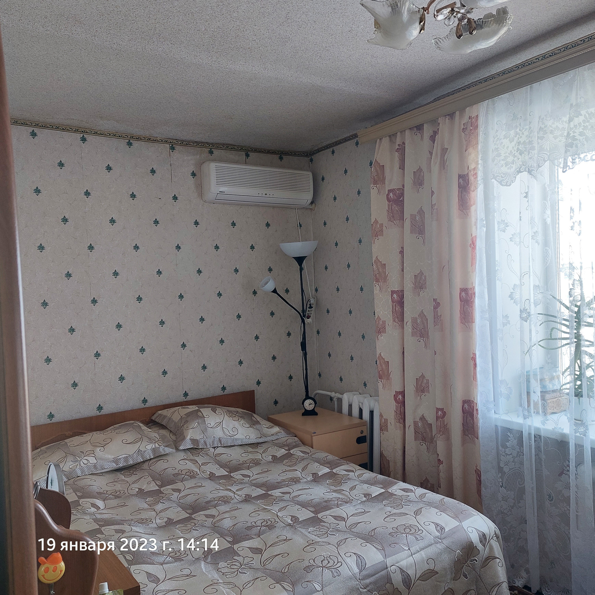 На полу линолеум.Натяжные потолки в спальне и в кухне.