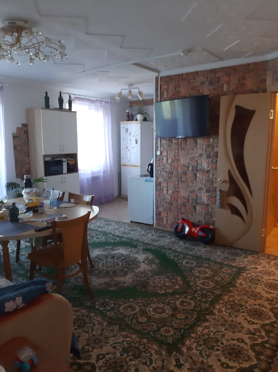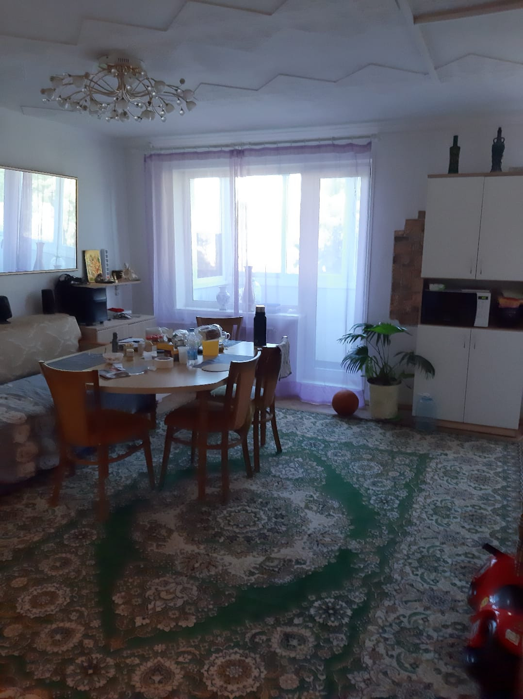 В квартире частично остаётся мебель (большой стол в зале  для большой семьи).Квартир для большой семьи  ,для каждого отдельная комната и большой зал -студия.