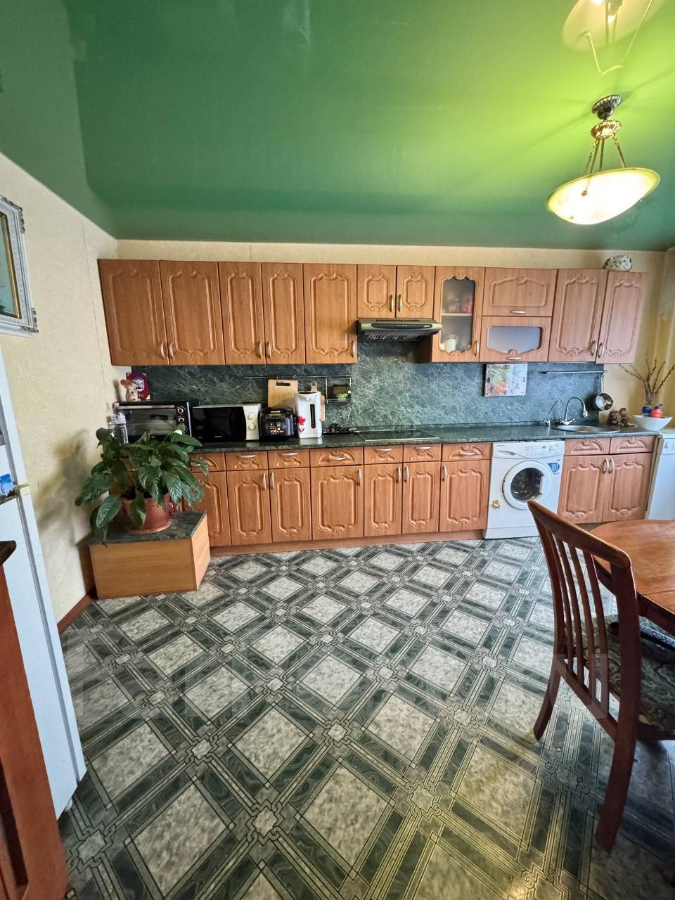 Сделан качественный ремонт, поменяна электрическая проводка, натяжные потолки, стены выровнены.