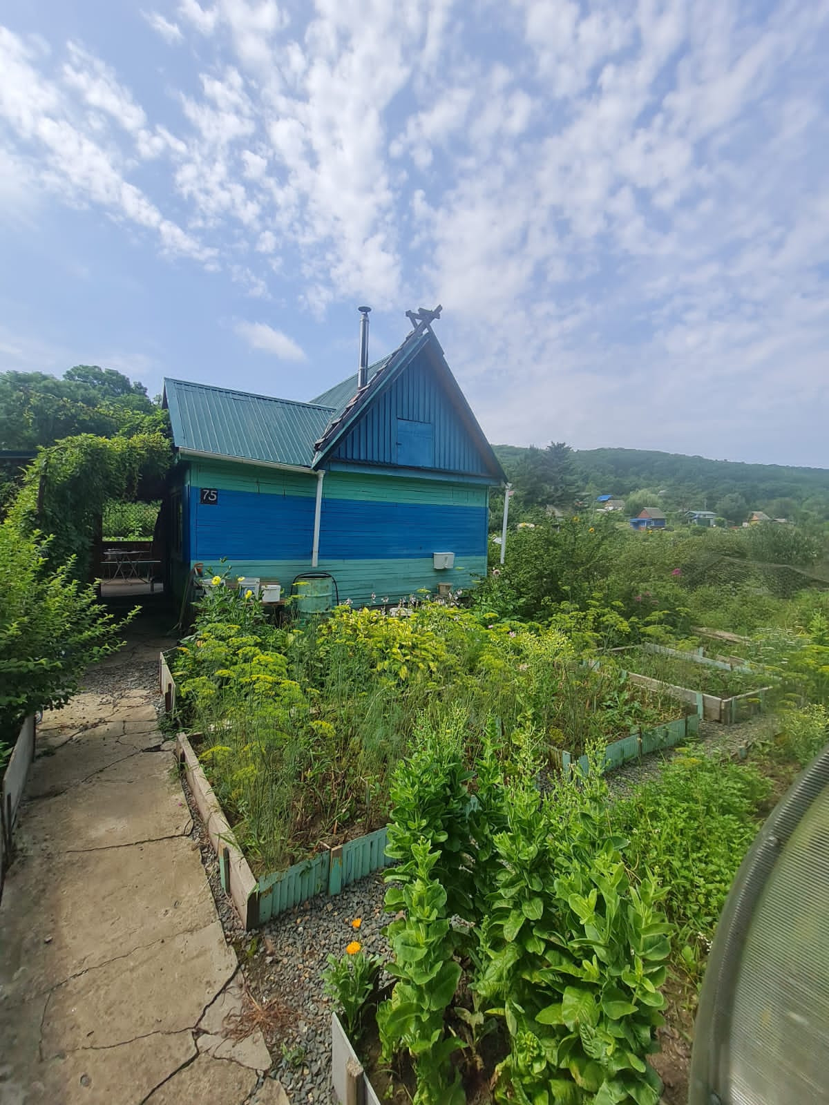 Участок очень ухоженный, много посадок, фруктовых деревьев, виноградник, и т.д. Также на участке есть теплица.