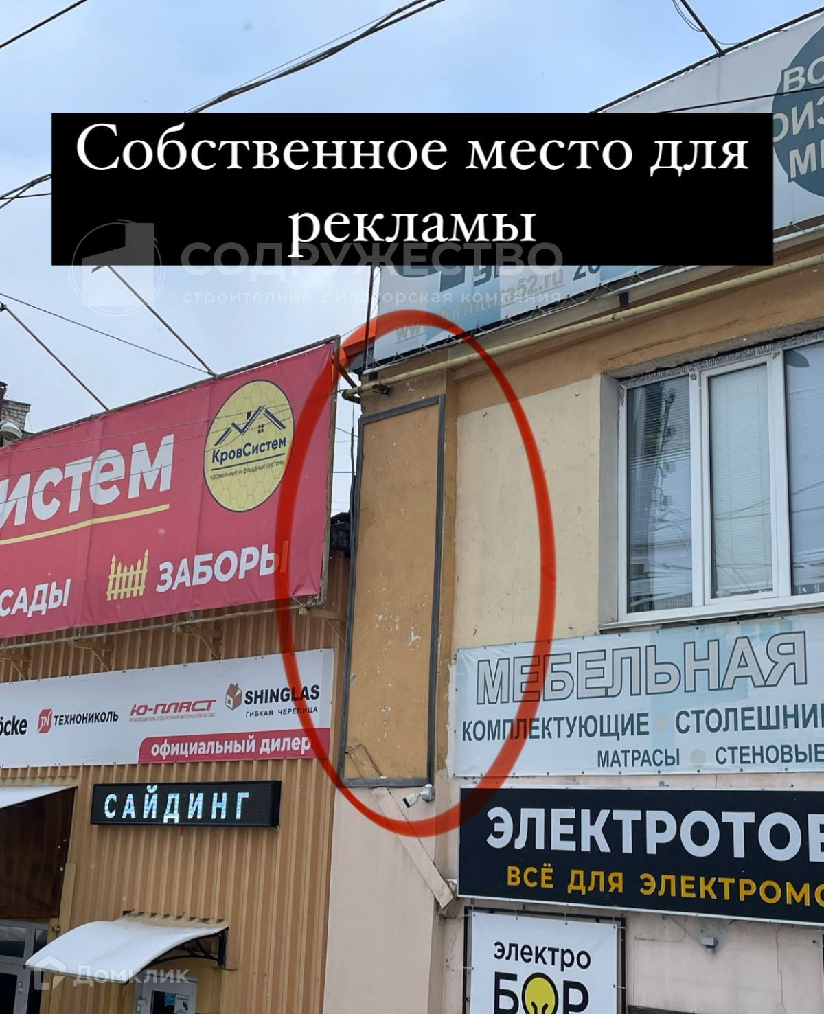 На фасаде здания имеется отдельное рекламное место.