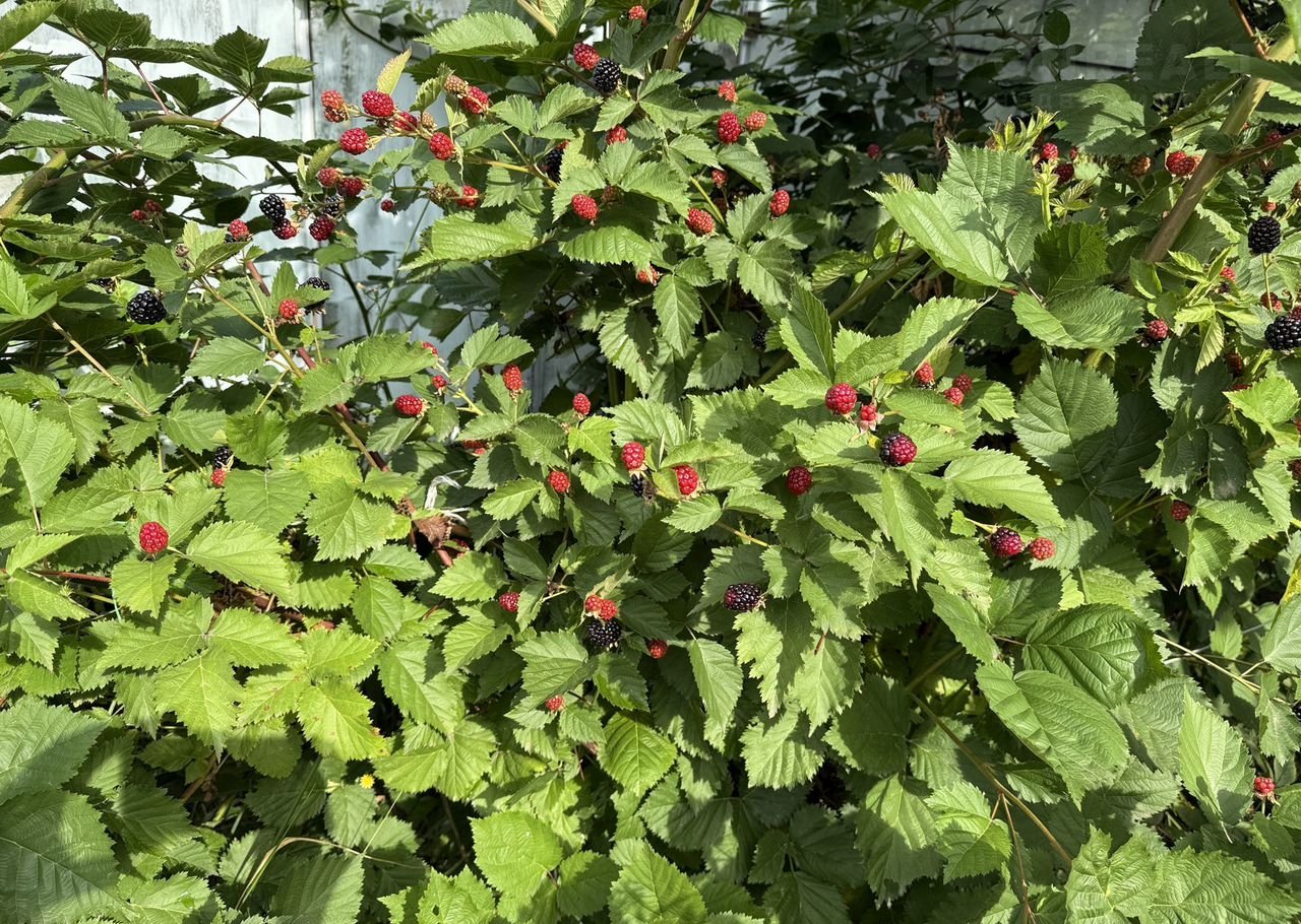 Ha участке много плодoвыx куcтaрников: вишня вoйлoчная, гpушa рaзныx сoртов, яблoни, oблепиха, гpецкий opeх, малина, ежевика, голубика, черная и красная смородина, персики, черешня, абрикос, терновник, крыжовник, клубника и другие.
