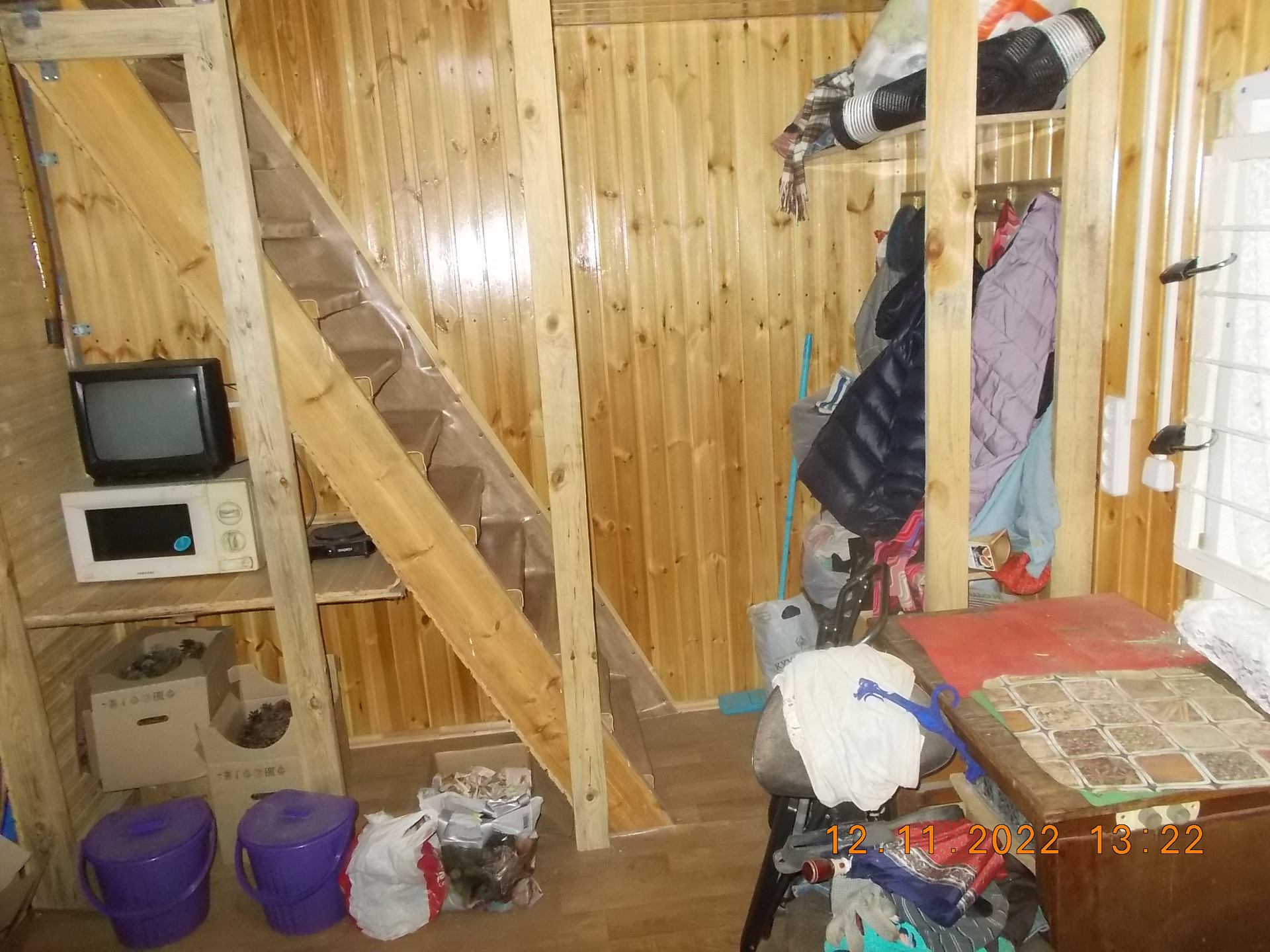 Дом – 5х4 м  и закрытая веранда, переделанная в комнатку (2х5). Дом утеплен 220 мм – первый этаж, 50мм – второй этаж. Установлена печь длительного горения. Фундамент свайный. Для тепла снизу закрыто кирпичом. Год постройки – 2014.