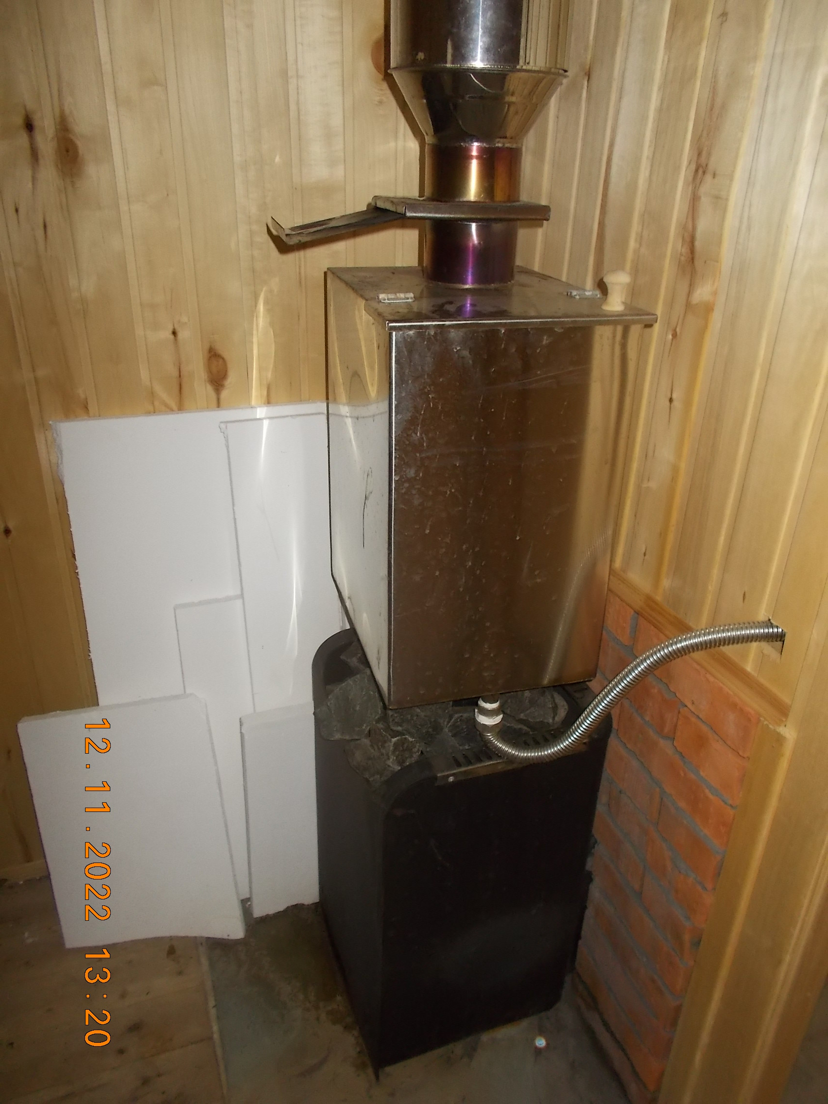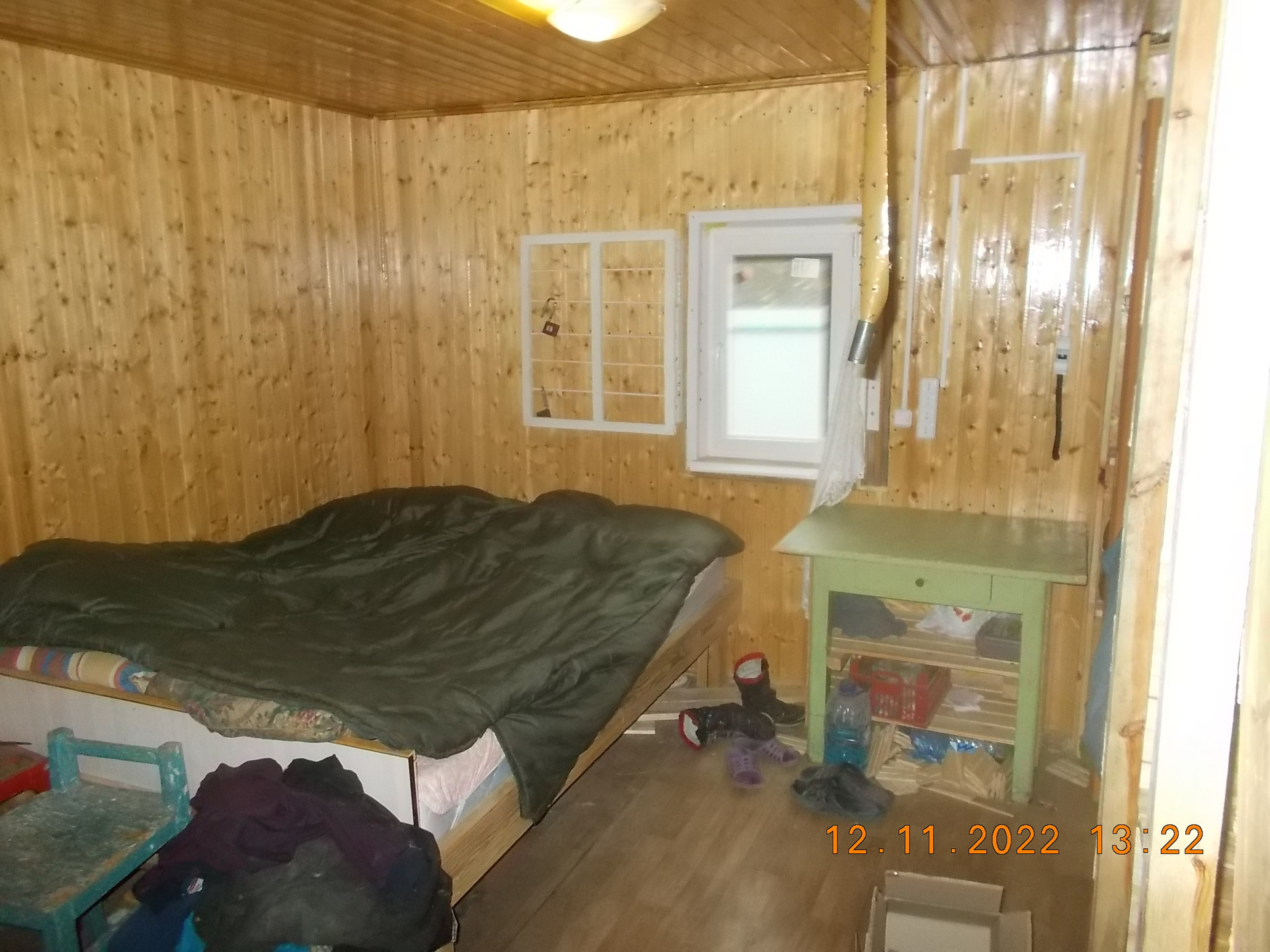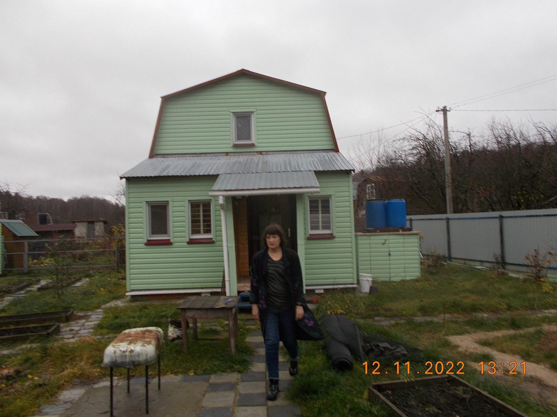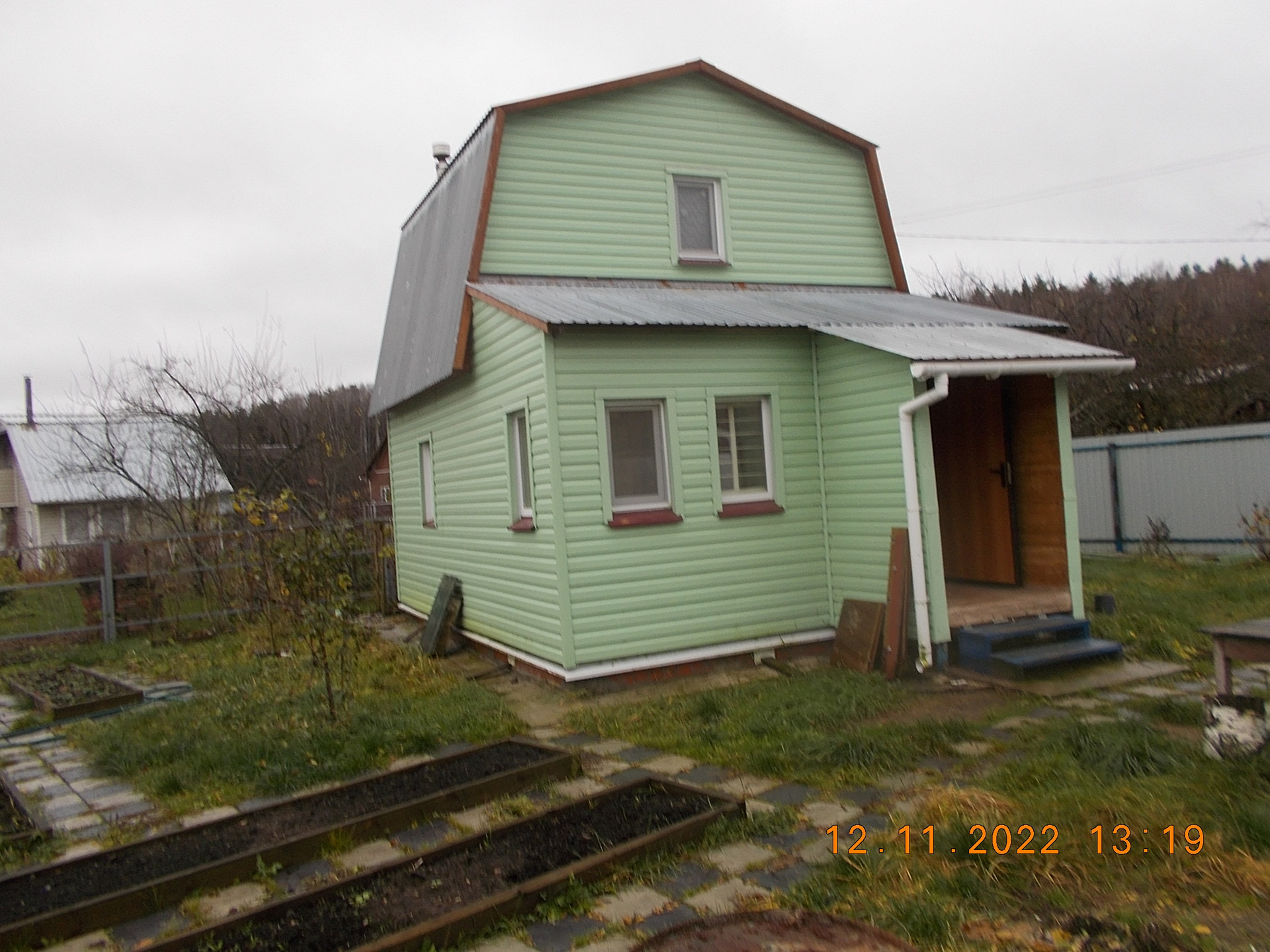 Дом  5х4 м (точно не помню, уточню позже) и закрытая веранда, переделанная в комнатку (2х5). Дом утеплен 220 мм  первый этаж, 50мм  второй этаж. Установлена печь длительного горения. Фундамент свайный. Для тепла снизу закрыто кирпичом. Год постройки  2014.