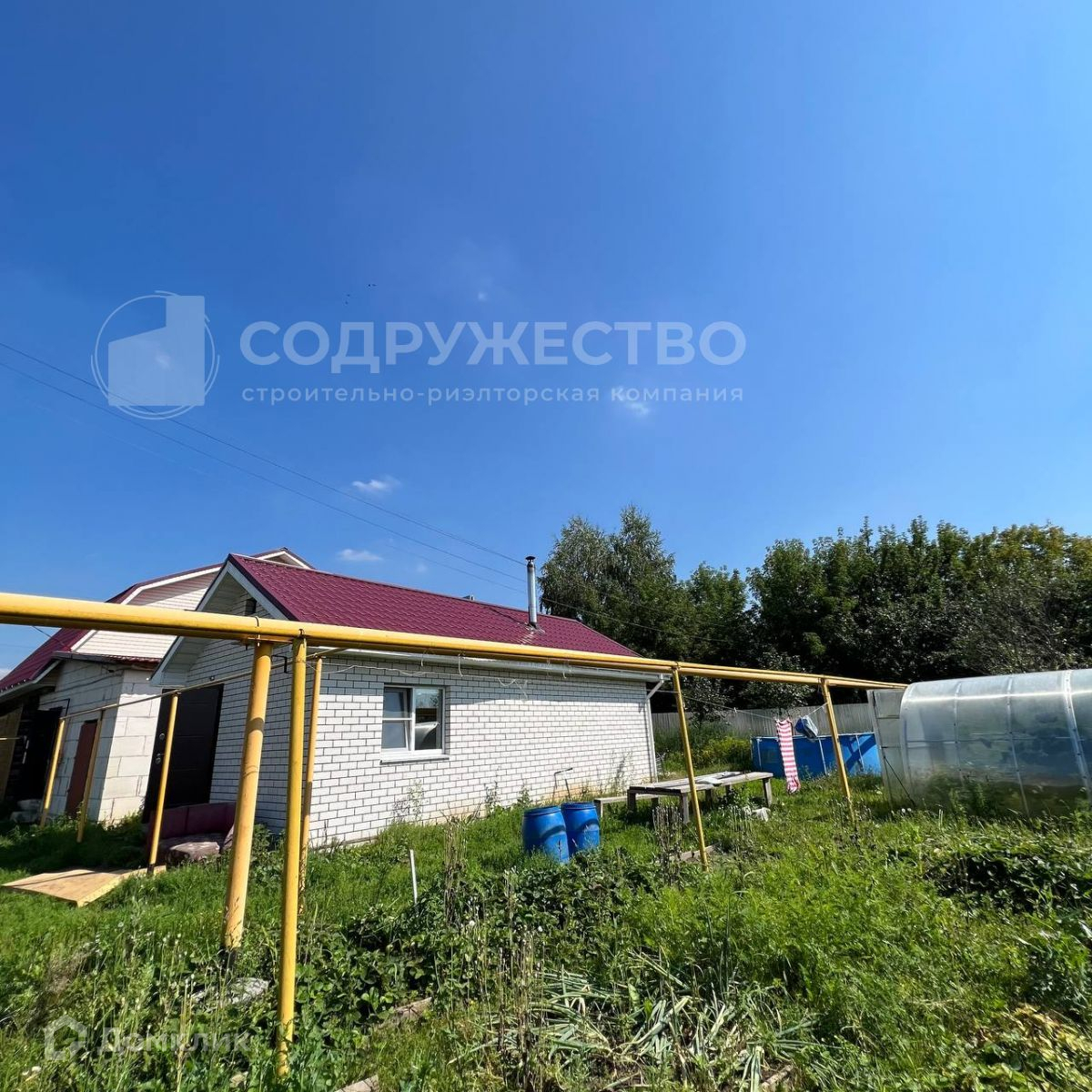 На территории есть большая хоз.постройка, построенная из блоков, теплица, большое количество плодово-ягодных деревьев и кустарников. Так же в углу земельного участка расположен рекламный щит, который приносит пассивный доход в размере 5000 р. ежемесячно.