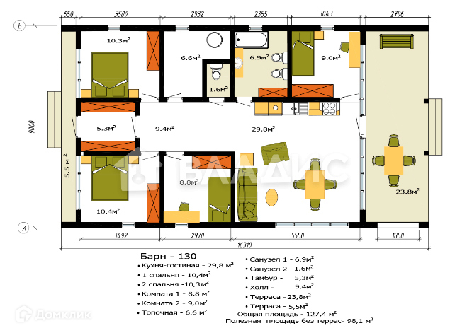 Общая площадь 110 м2
