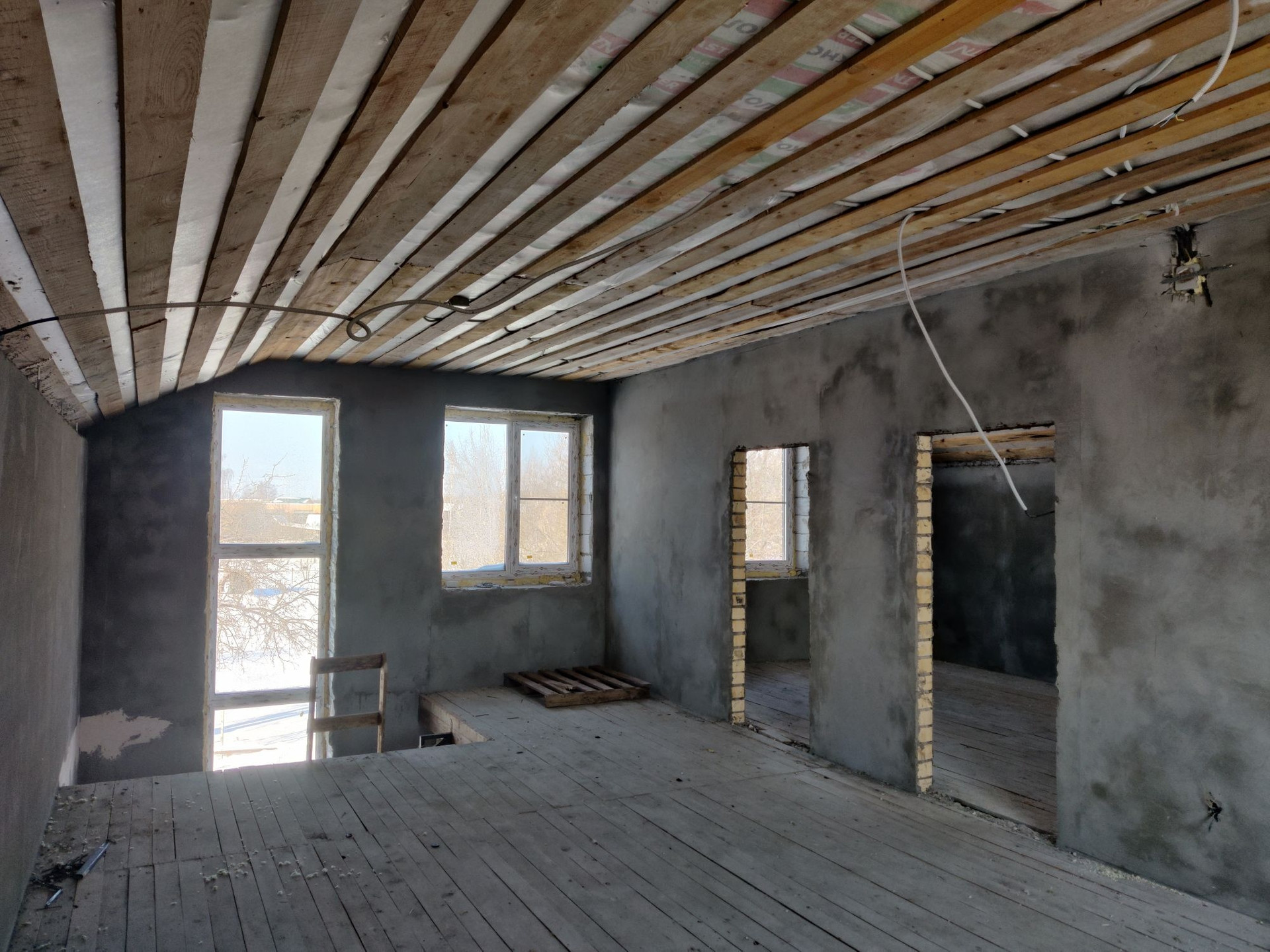 На втором этаже: 3 спальные комнаты и санузел.