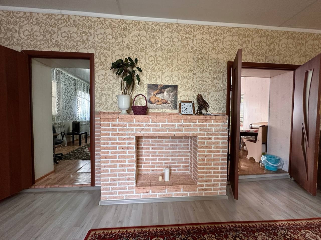 Дом полностью кирпичный, подвал высотой 2.8 м. под всем домом ,имеется баня, гараж и терраса, по всему периметру участок огорожен забором. В доме 3 изолированные спальни , большой зал и просторная кухня.Дом с ремонтом , можно сразу заехать и жить!