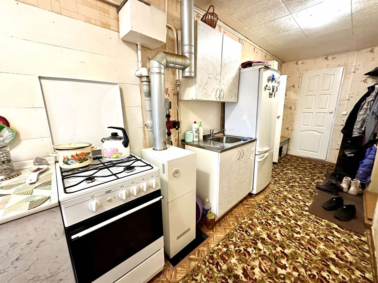 Коммуникации: отопление - АГВ (надежный одноконтурный котел), горячая вода - эл. бойлер, вода - ЦЕНТРАЛЬНАЯ ВОДА, канализация - выгребная яма (яма большая и откачивают редко).