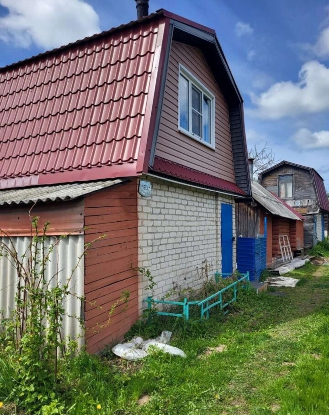 Дача кирпичная, окна пластиковые, крыша металлочерепица .