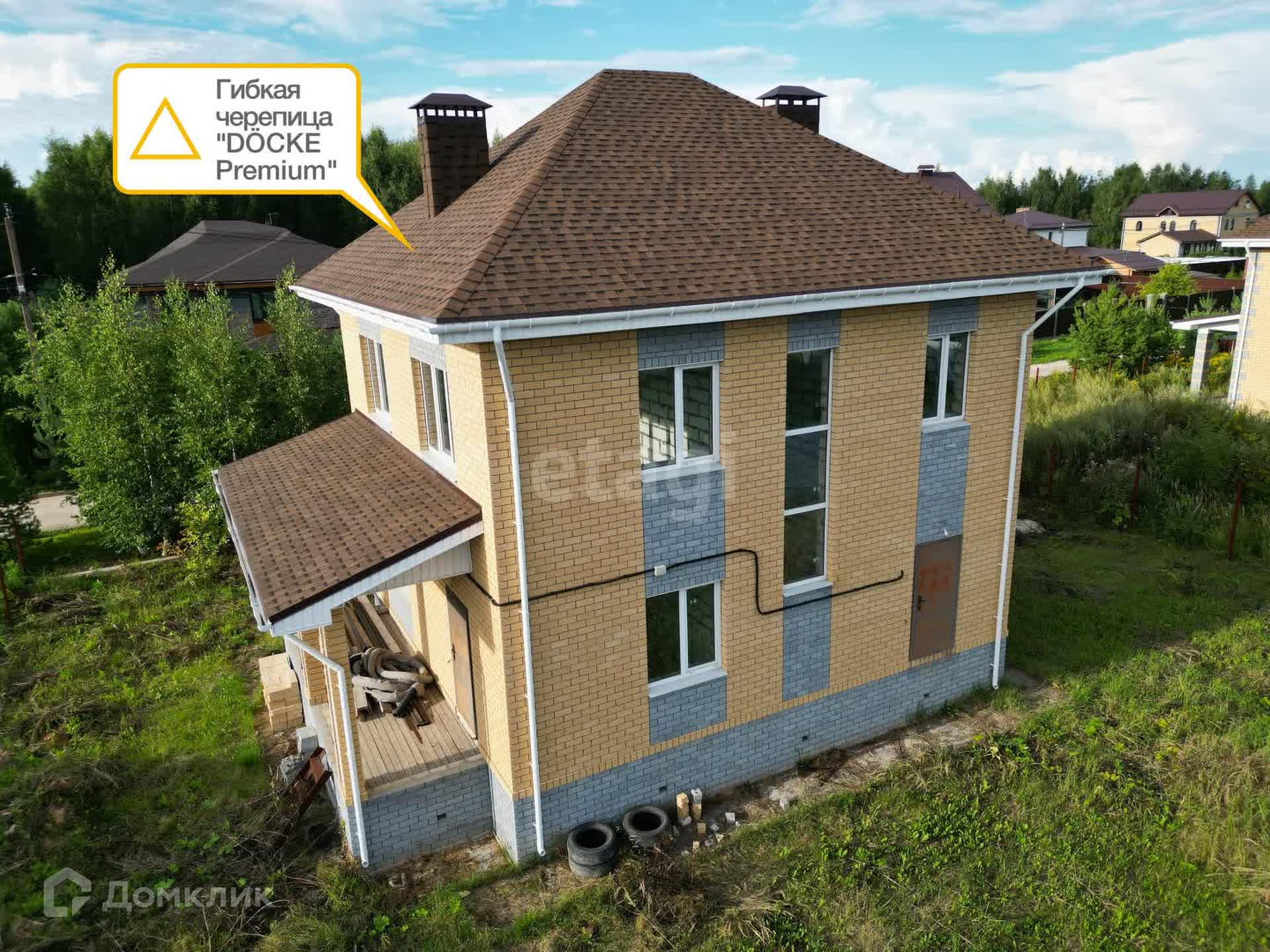 ✔️ Дом сделан из качественных современных материалов. Фундамент: монолитная плита с утеплением. Стены: из газосиликатного блока, с фасадной декоративной отделкой из кирпича премиум класса. Мягкая кровля Deke (премиум сегмент).