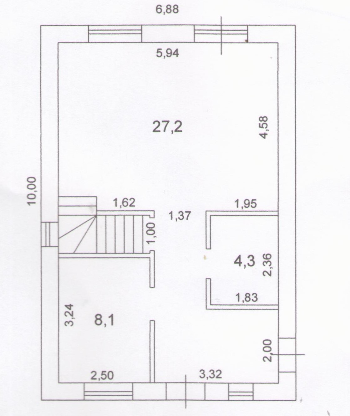 Цоколь – высота потолков 2,5 м, пол забетонирован.