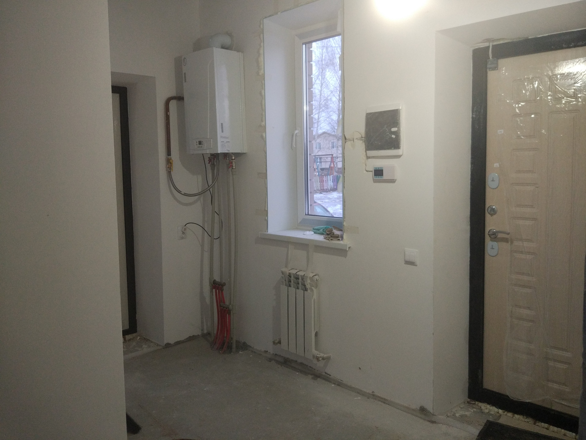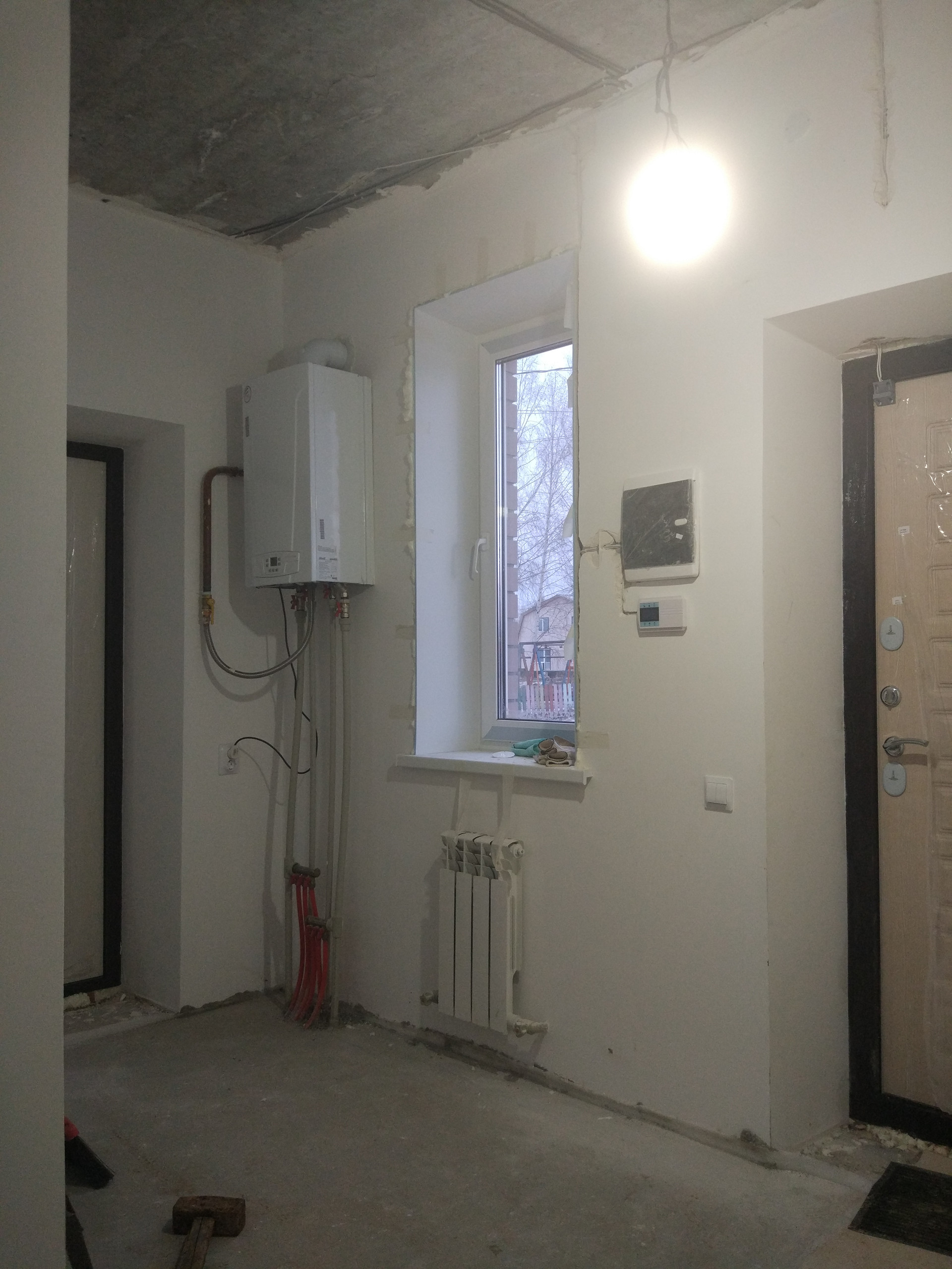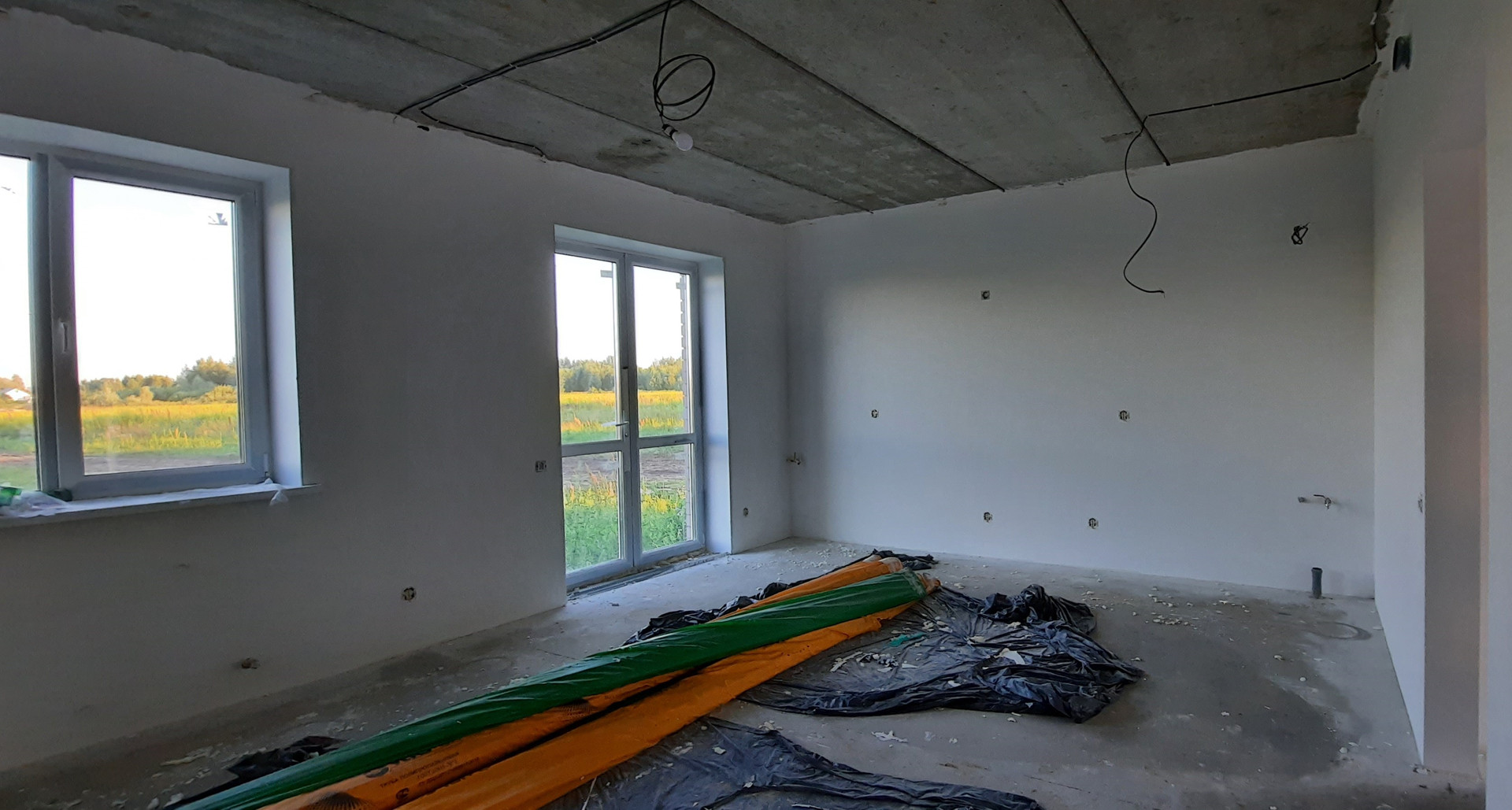 Дом продается в предчистовой отделке: стены заштукатуренные под обои, на полу ровная стяжка, на окнах откосы и подоконники, разводка электричества, теплые полы по всему первому этажу от двухконтурного котла, радиаторы на 2ом этаже (отделка как на фото).