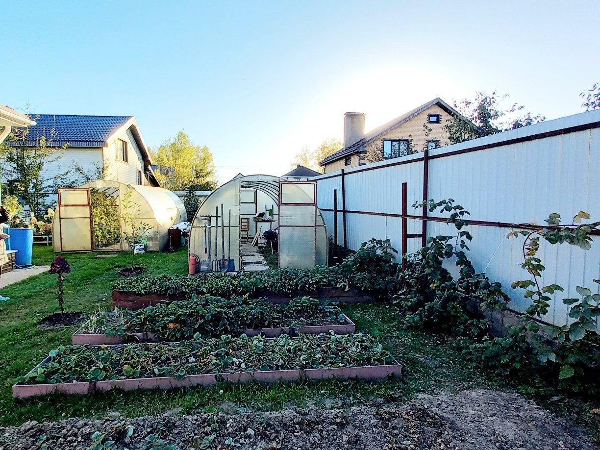 Участок ровный, сухой, ухоженный. Большое количество плодовых деревьев и кустарников, все сортовые, дорогие, заказывались из садовых питомников. Груши (4 сорта), яблони (4 сорта), черешня (2 сорта), черевишня (2 сорта), слива (3 сорта), вишня (2сорта), абрикос, виноград (6 сортов), голубика (5 сортов), гортензия (10 видов), черная и кр смородина, малина, крыжовник, сортовые виктория и земляника. Остаются 2 теплицы