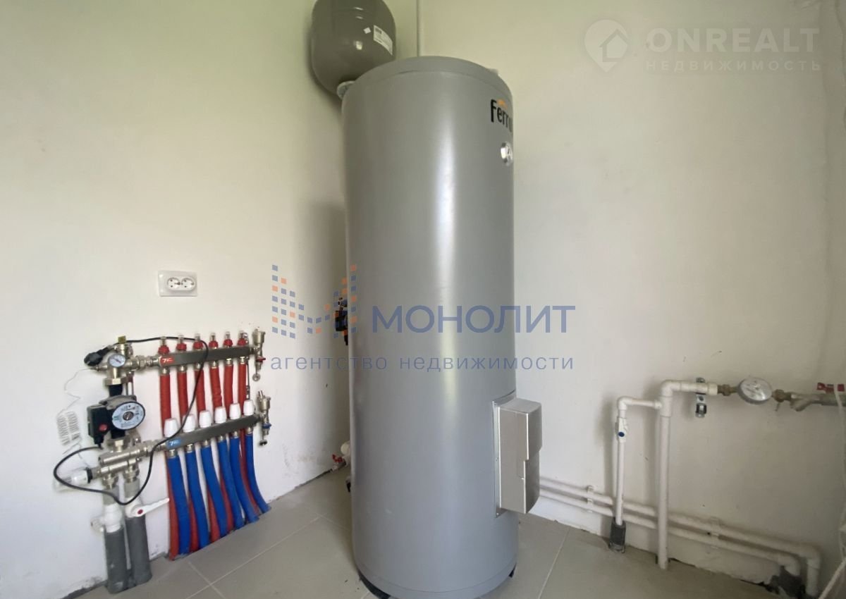 - Отопление: радиаторы+ теплый пол на 1 этаже + ветка отопления для бани. Котел одноконтурный Baxi с баком косвенного нагрева 150л горячей воды. Разводка по всему дому.