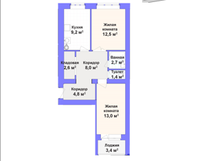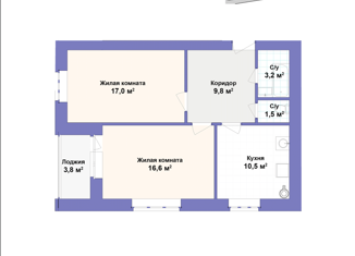Продажа 2-комнатной квартиры, 59.7 м2
