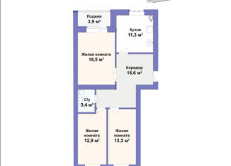 Общая площадь: 56.3 м2