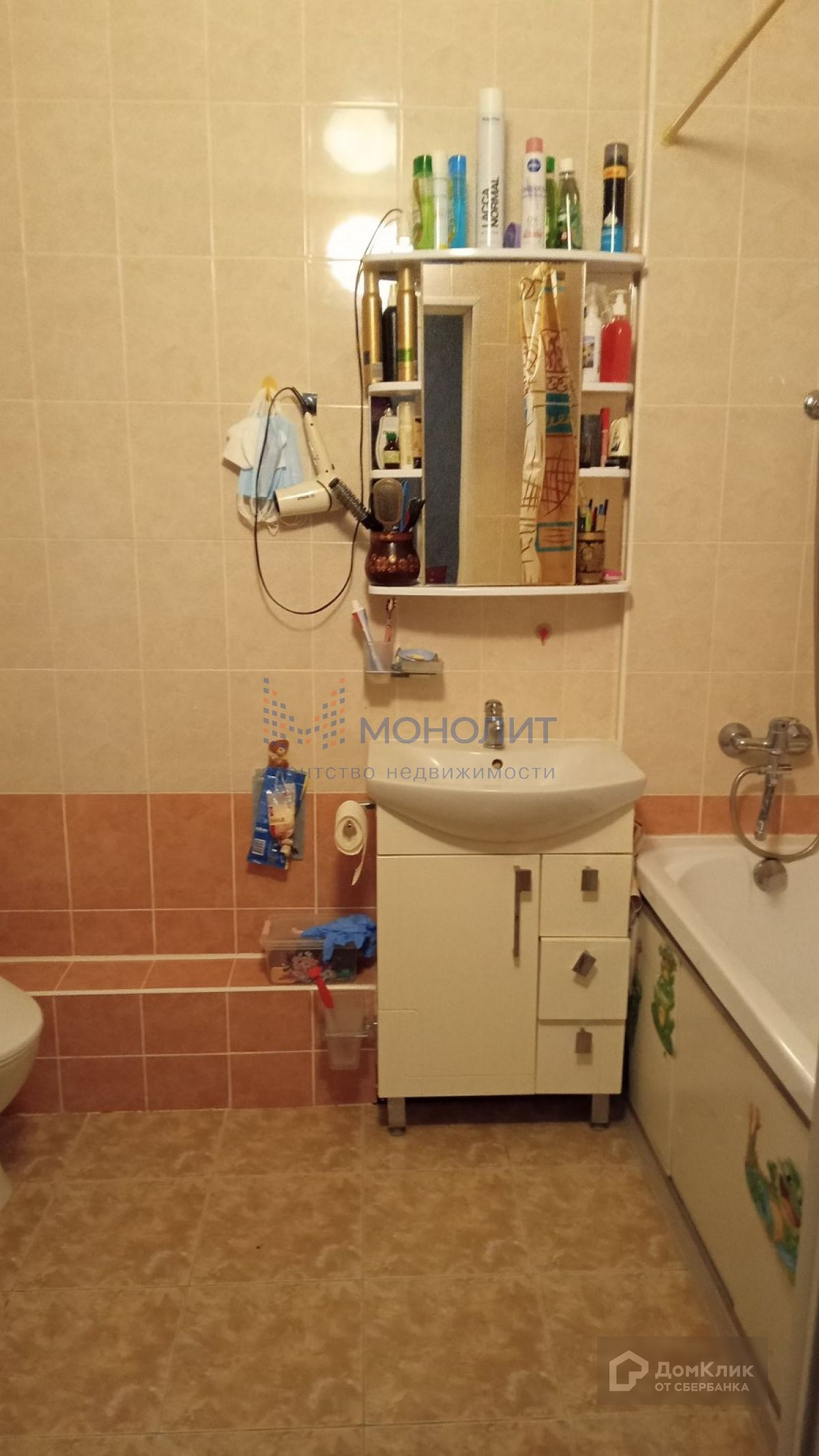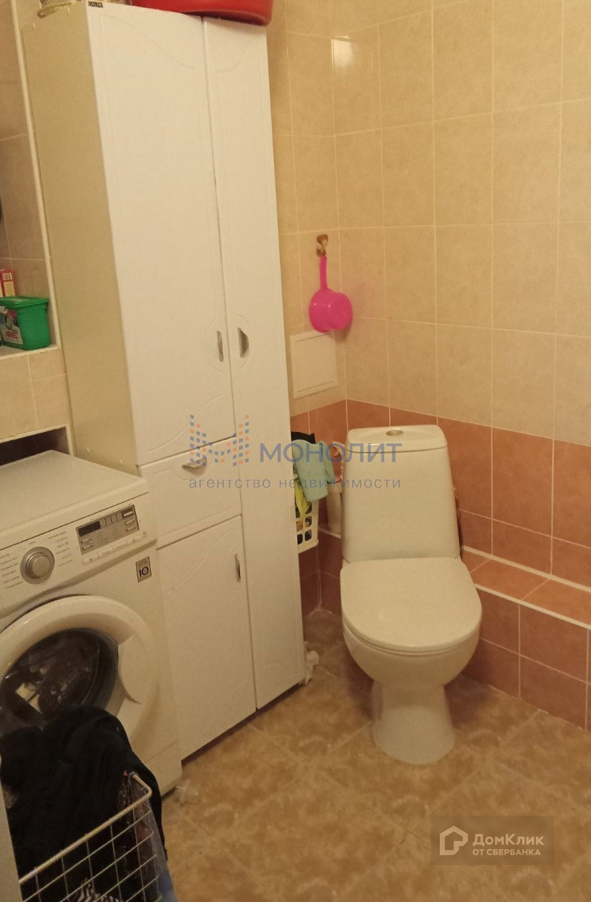 С/уз совмещенный полы и стены выложены плиткой.