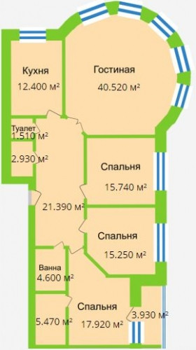 Жилая площадь 88.6 м2