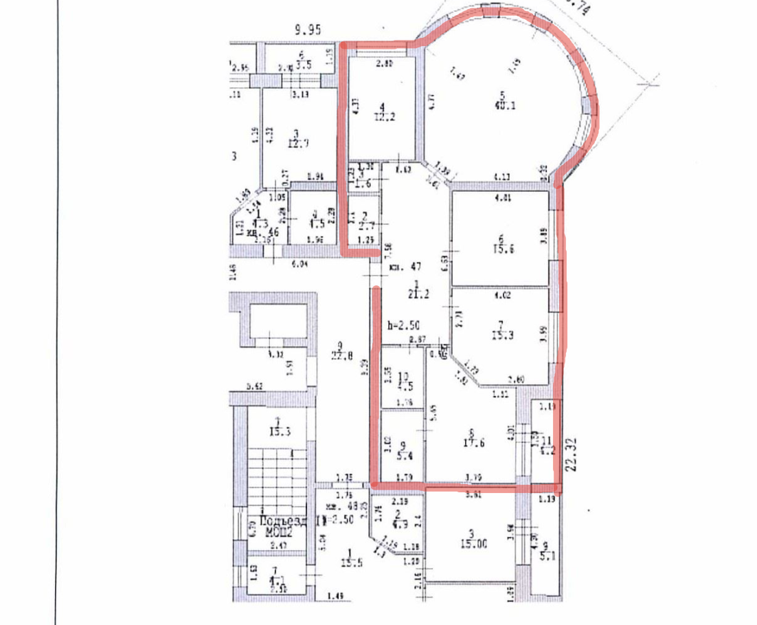 Высота потолков 2.55 м