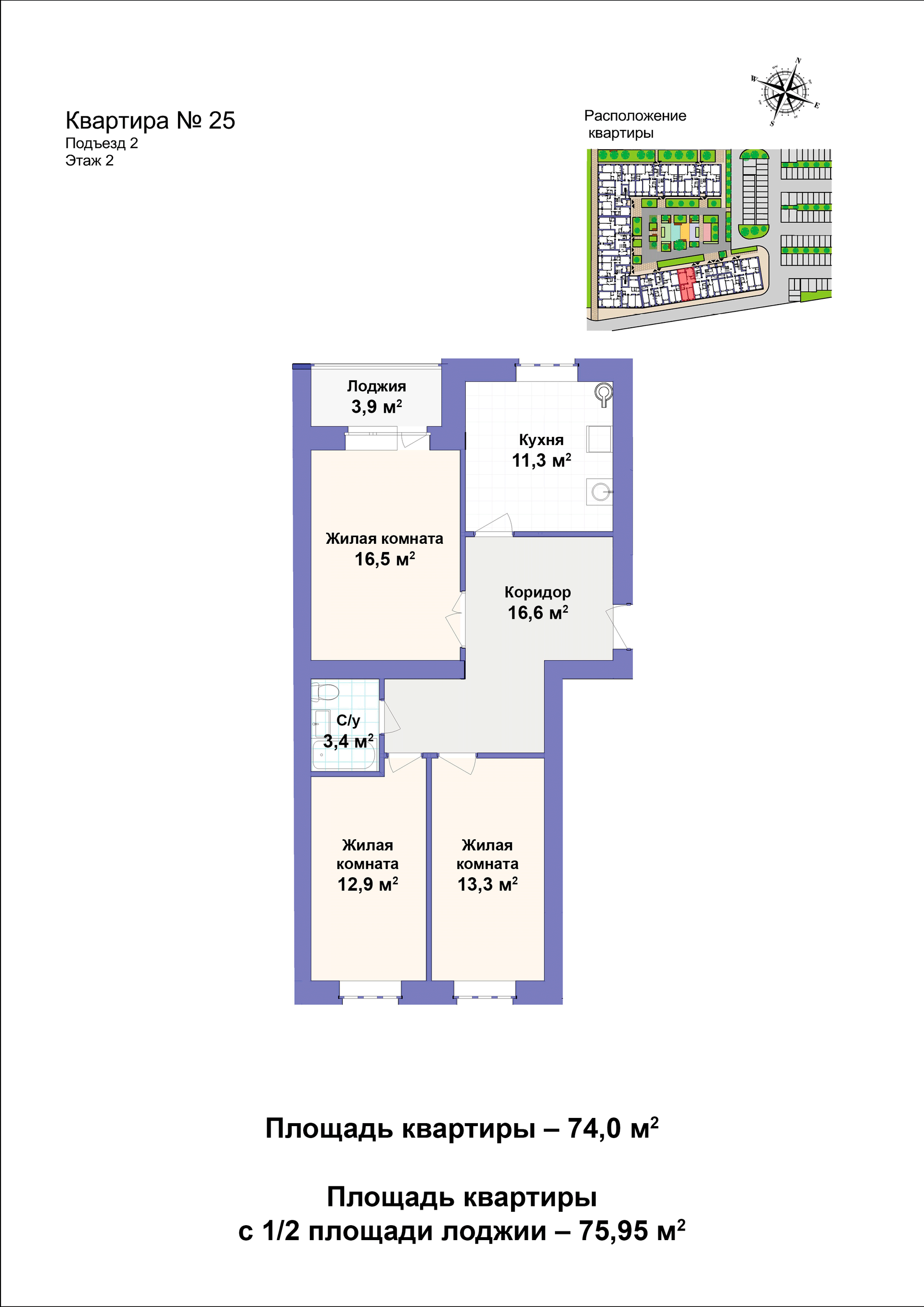 Общая площадь 74 м2