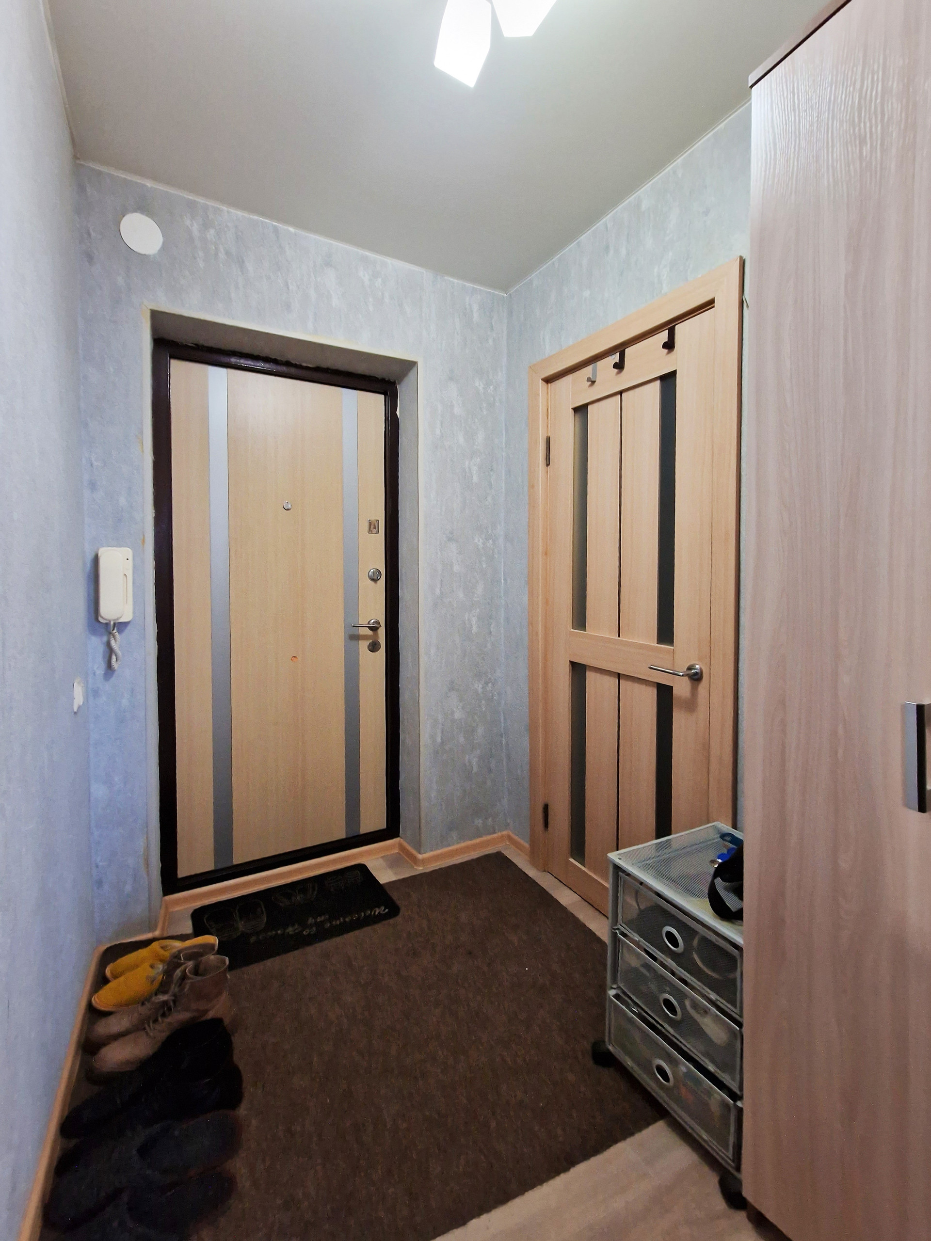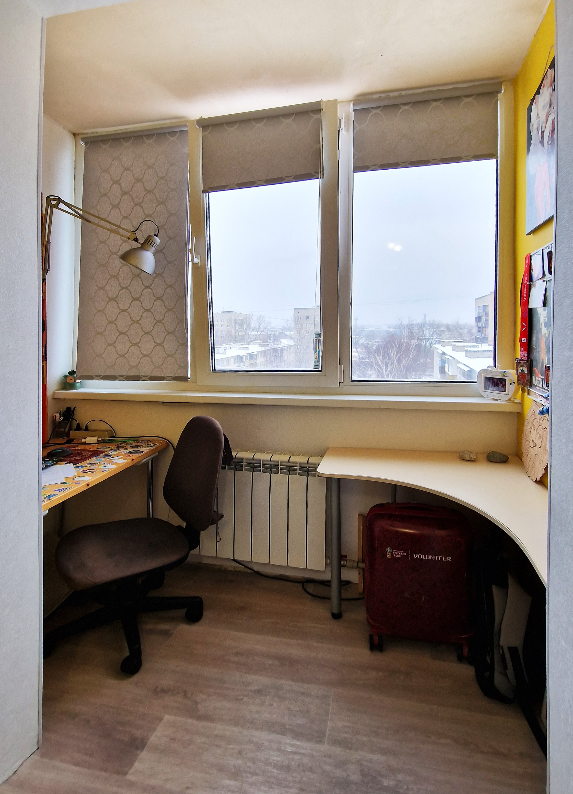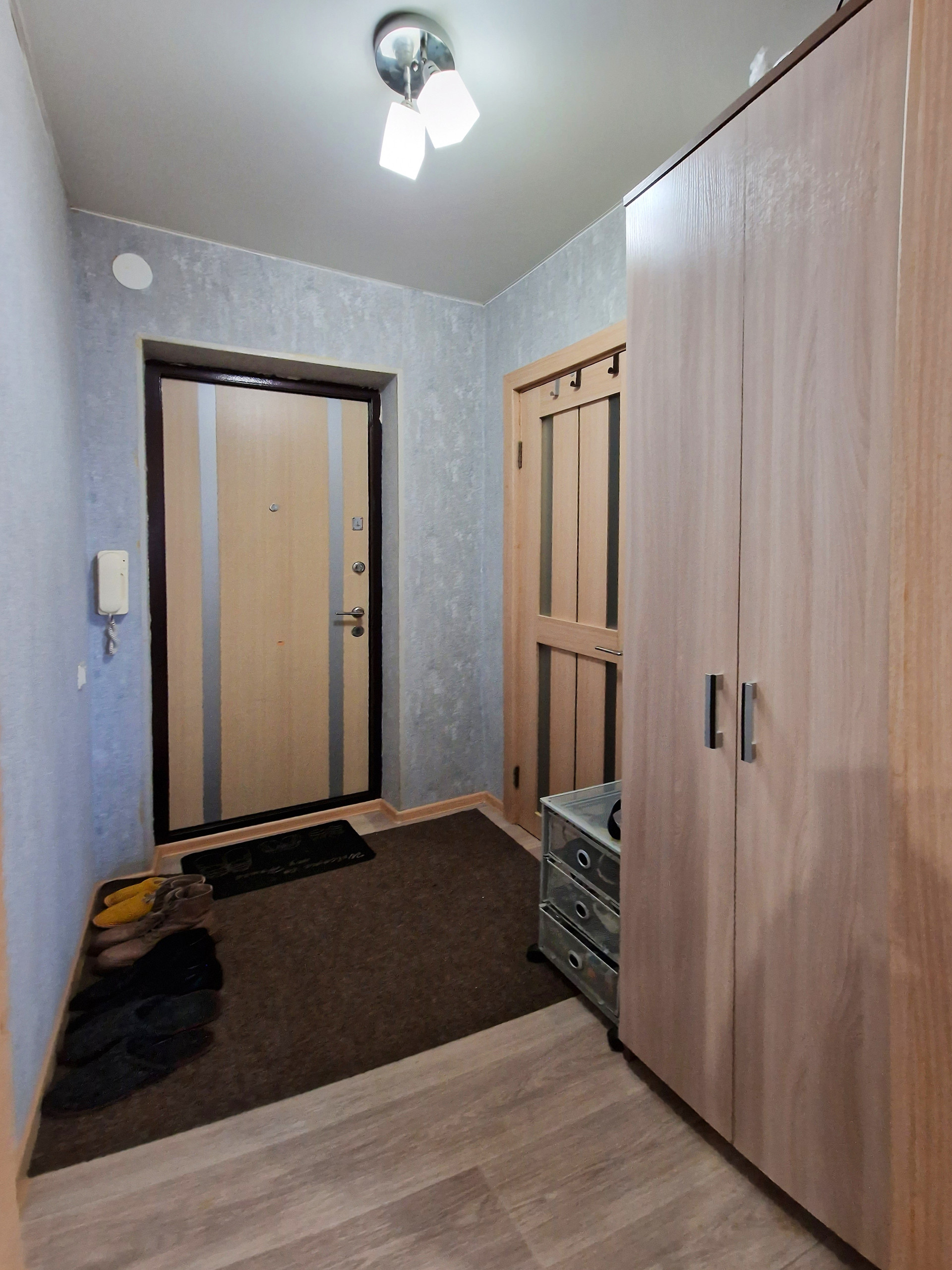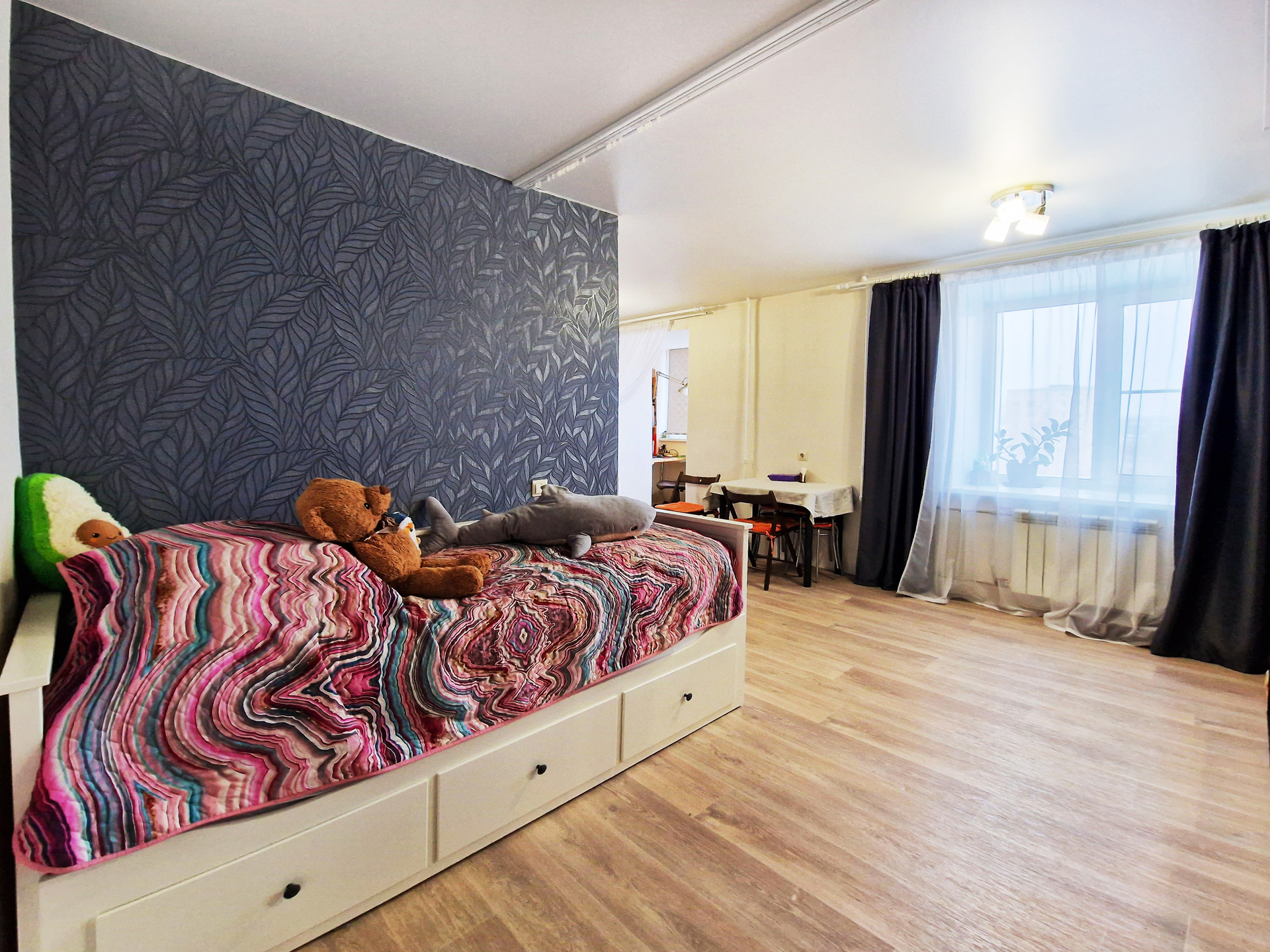 Недавно собственником был сделан комплексный капитальный ремонт: новые дорогостоящие окна, утеплен балкон со всех внешних сторон + пол на нём, сам балкон объединен с жилой комнатой, заменен карниз, заменены батареи и трубы, выровнены стены, натяжной потолок, новая проводка, счетчики на воду и электричество. Жилое пространство комнаты зонировано шторой, которая в настоящий момент снята ввиду отсутствия в этом необходимости. Внешнее утепление всей квартиры. Качественная, надёжная входная дверь. Дорогой тёплый линолеум, соединён бесшовной холодной сваркой. Санузел отделан современной плиткой, стоит дорогая кабина 3 видами душа, с музыкой светом и пр.)