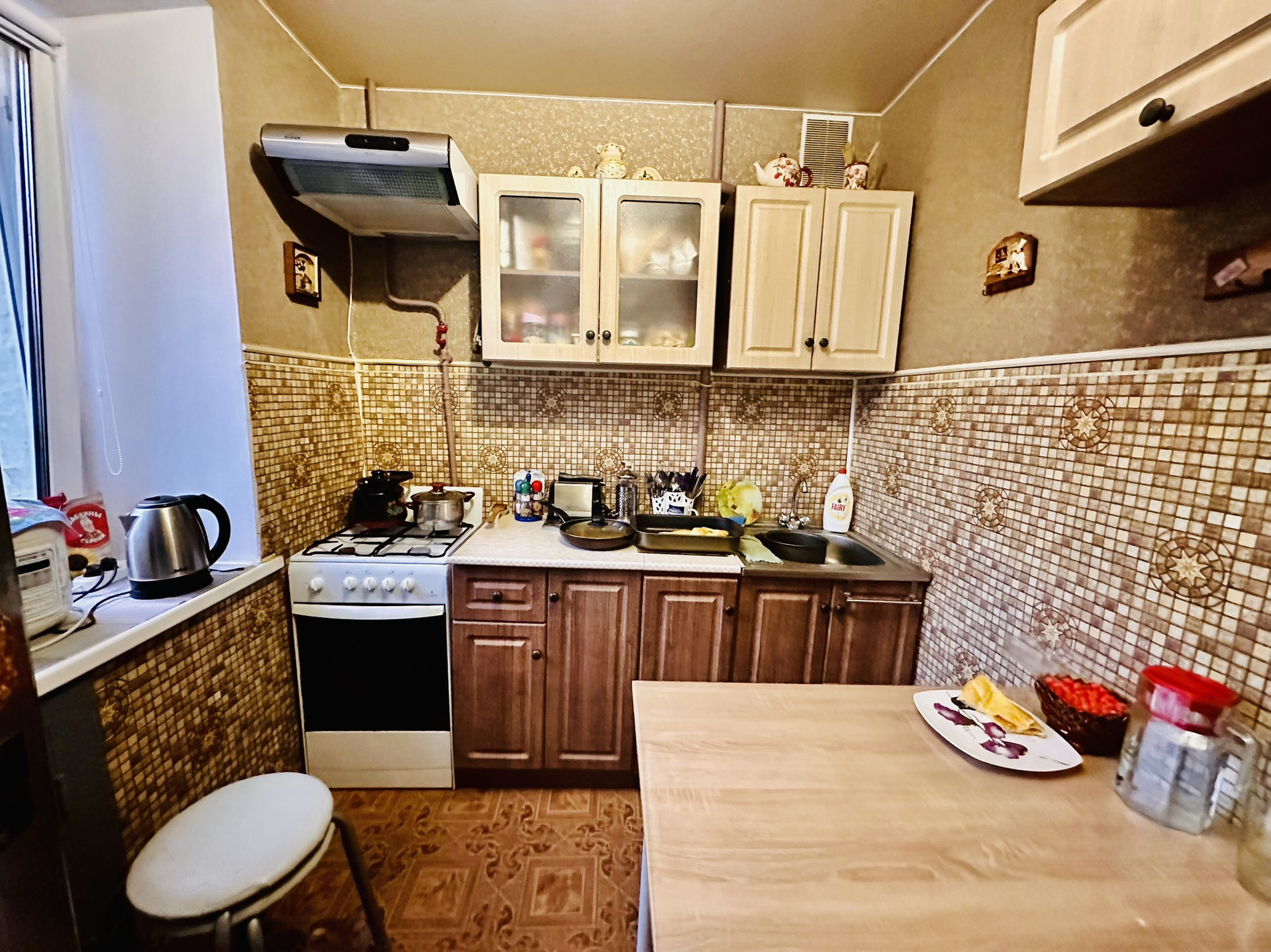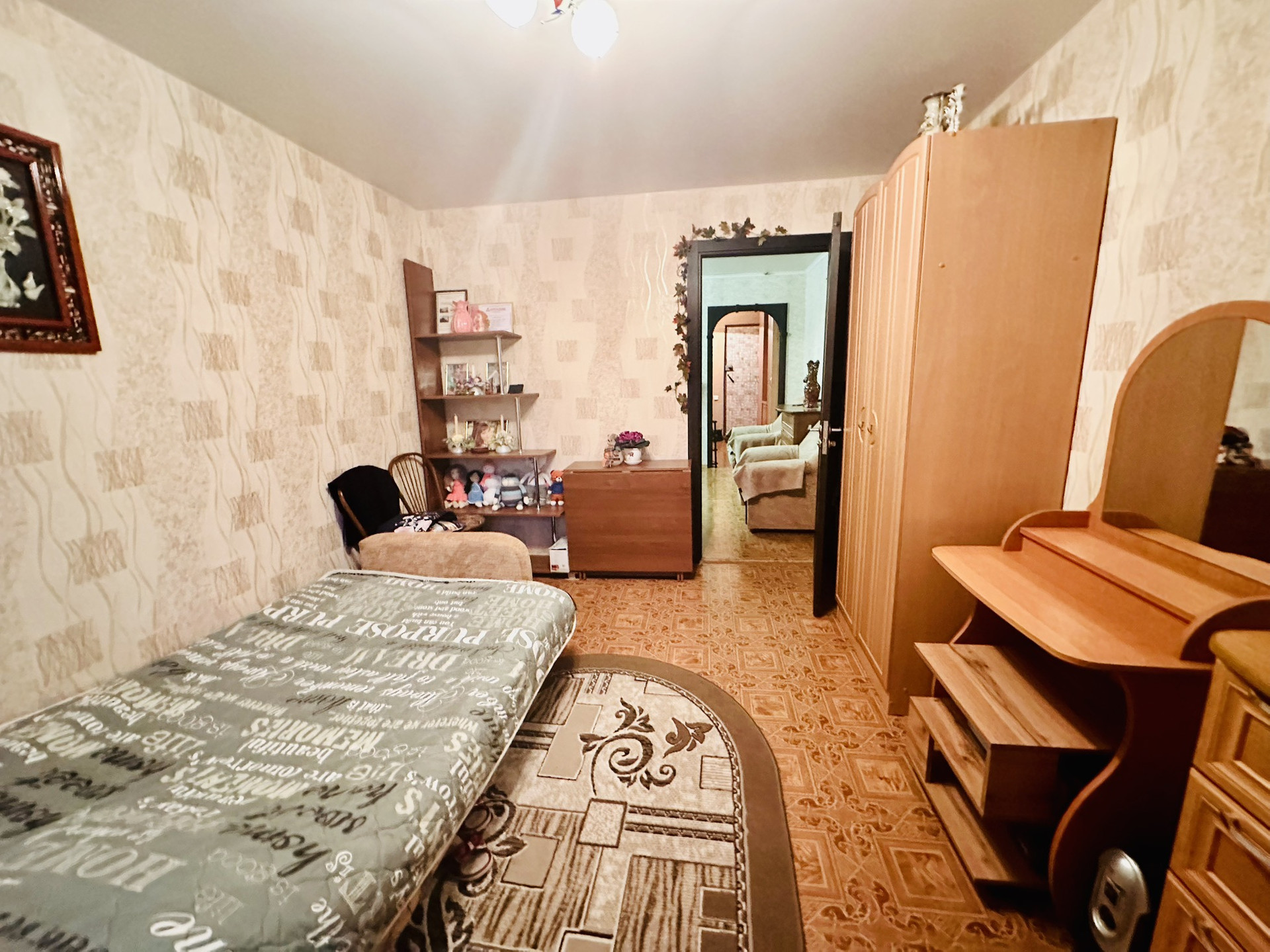 Состояние жилое, сделан косметический ремонт: пластиковые окна, натяжные потолки, разводка воды пластиковая-установлен счетчик, межкомнатные и входная дверь сменены , батареи отопления-чугунные (в квартире очень тепло).