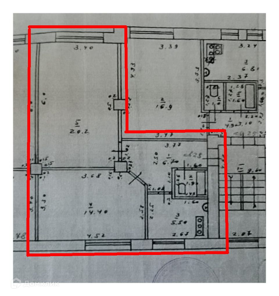 Жилая площадь 34.4 м2