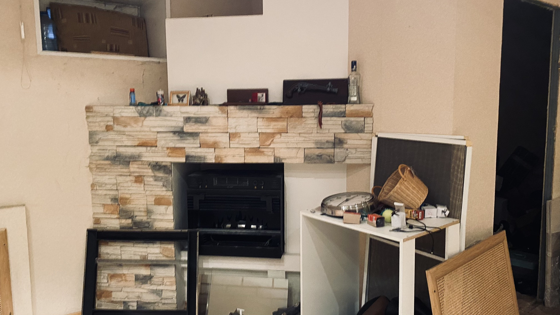 -на цокольном этаже электрический камин