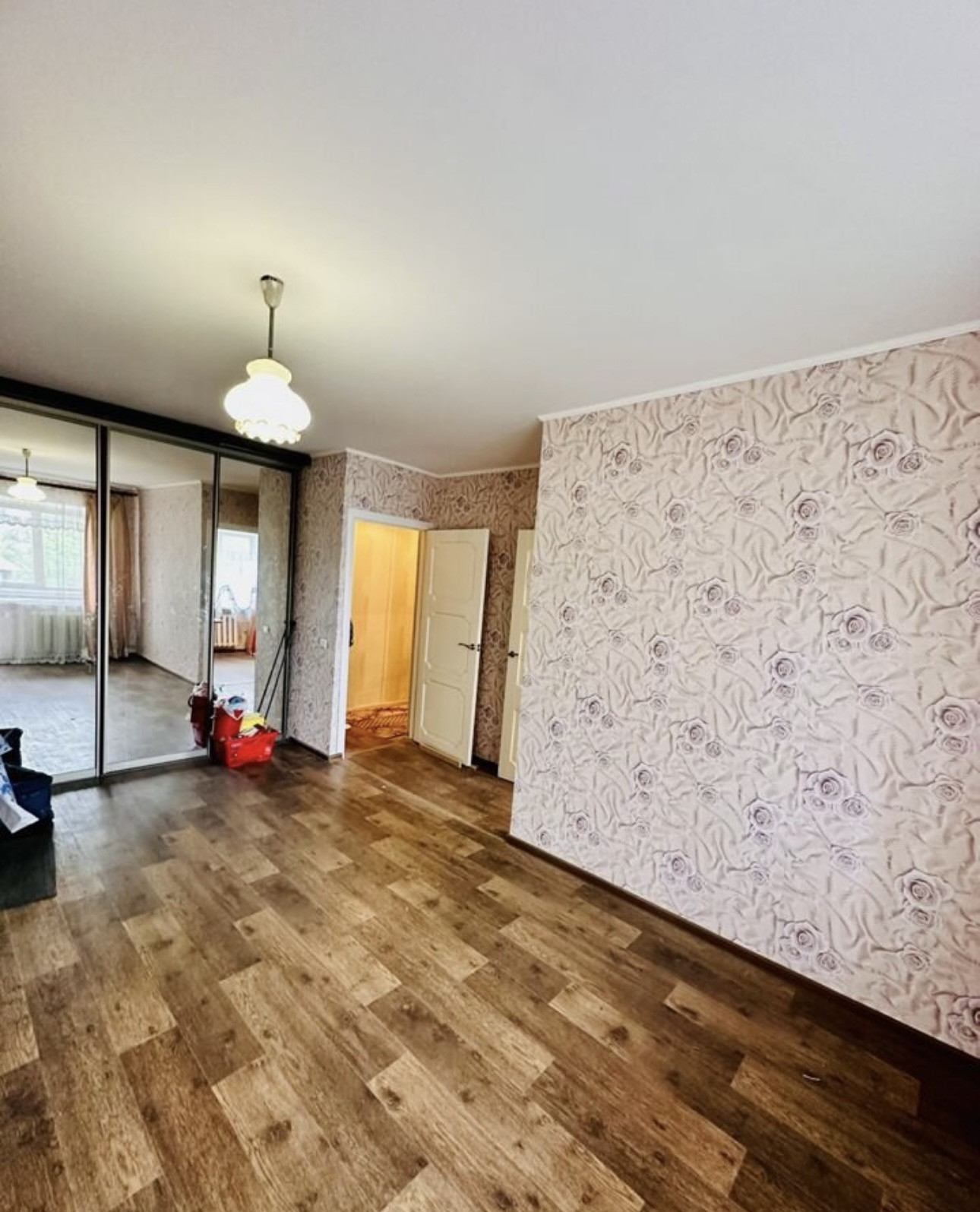 32 м2, небольшая прихожая, сан узел совмещен, кухня-6м2, комната 18м2.