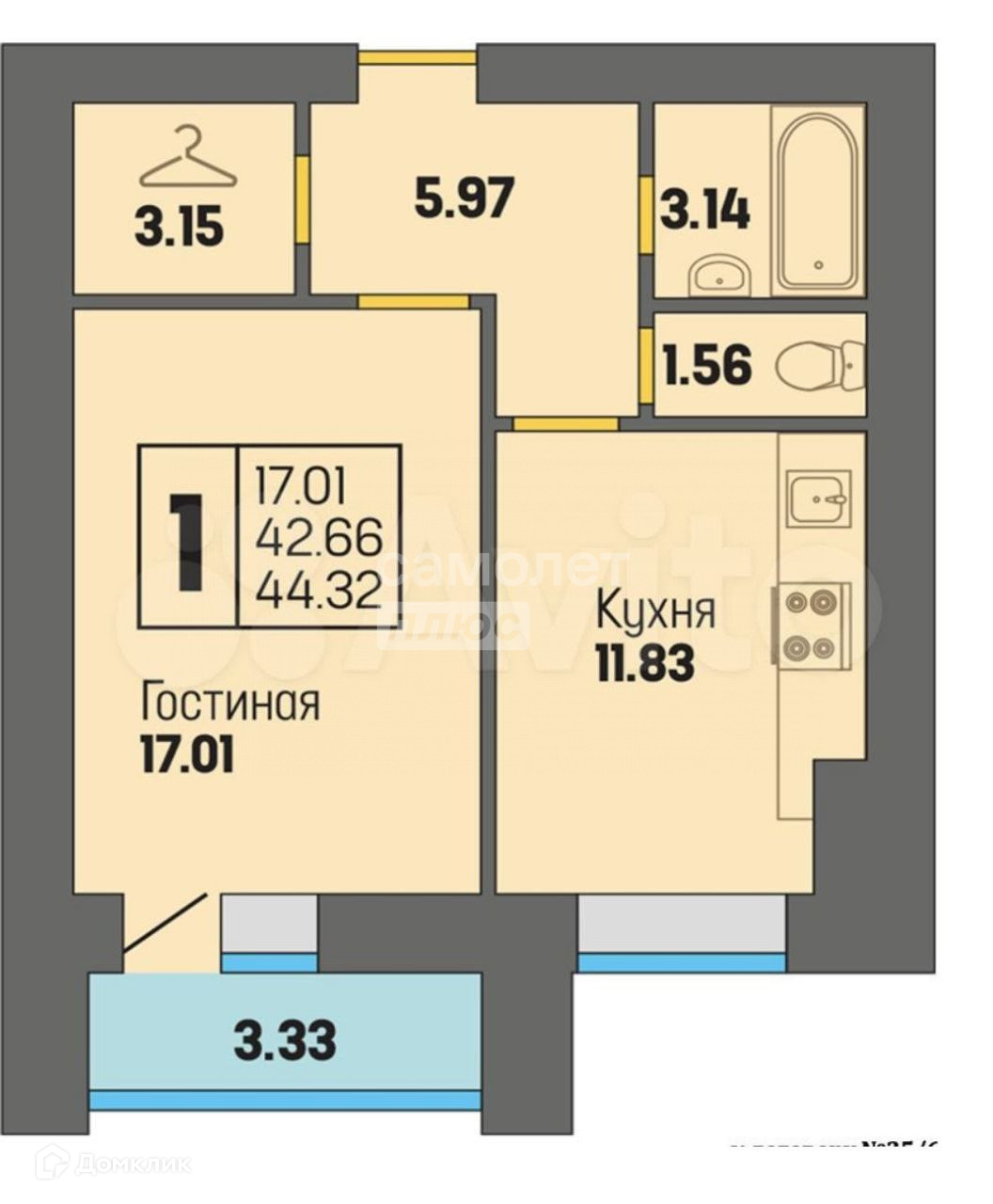 Балкон, лоджия 1 лоджия
