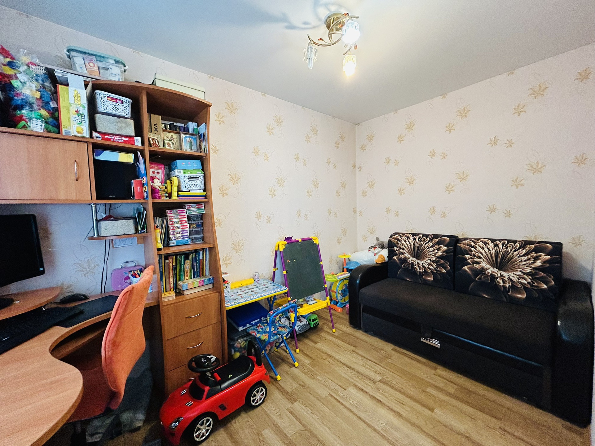 Район в котором расположена квартира очень богат инфраструктурой: бытовые и продуктовые магазины, детский сад через дорогу и школа через дом. Многочисленные кружки и развлечения для детей и взрослых, ФОК, поликлиника. Всё есть и всё рядом.