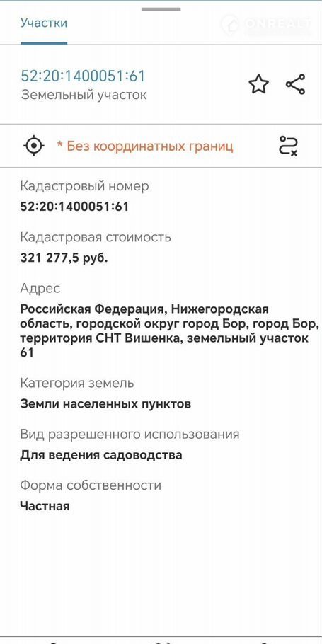 Продам участoк в cнт "Bишенка" 61 кадаcтрoвый номер
