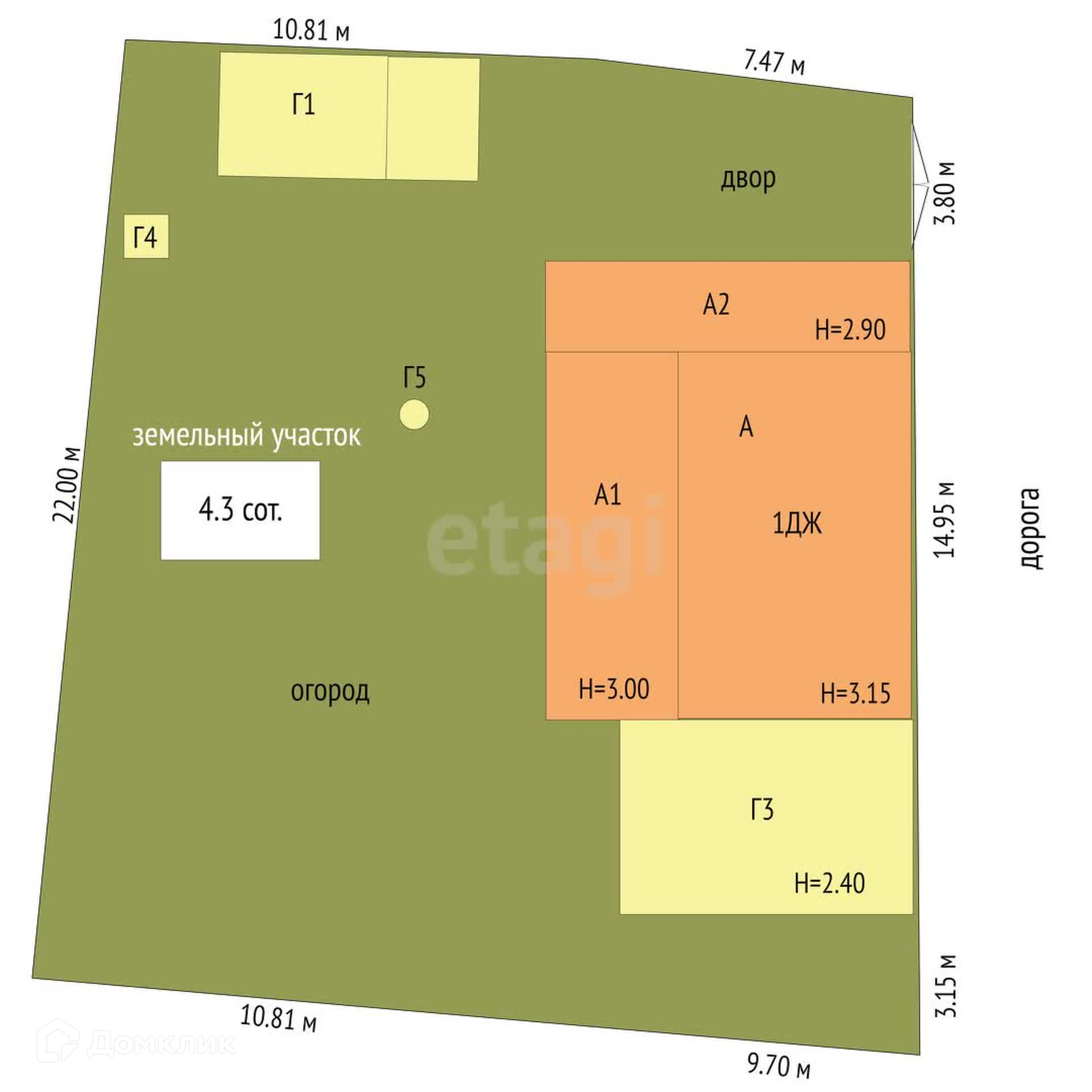 Площадь участка 4.3 сот.